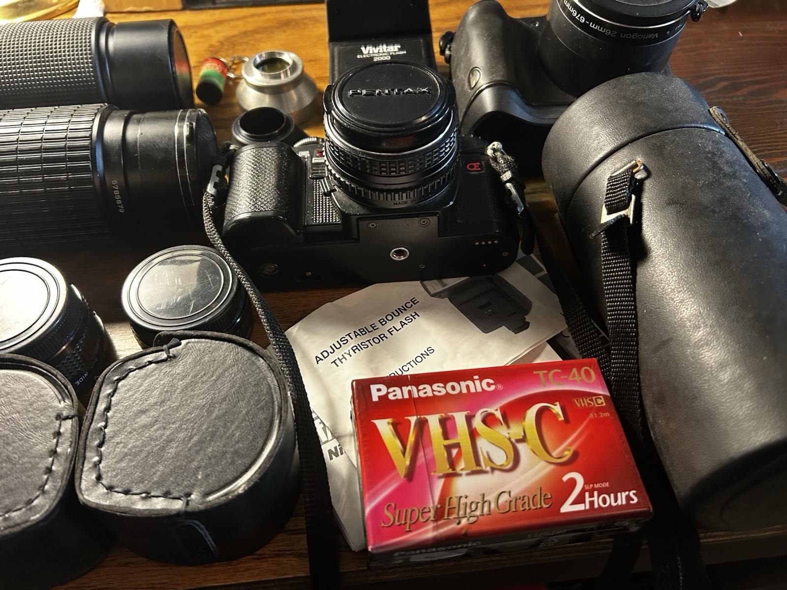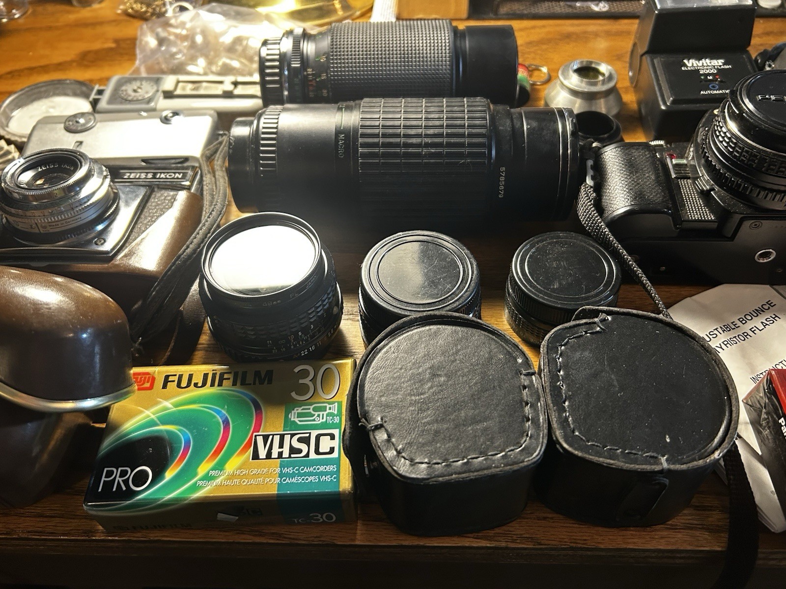 Vintage Cameras And Lenses - Pentax, Kodak, Zeiss Ikon, Minolta 16, Hawkeye B