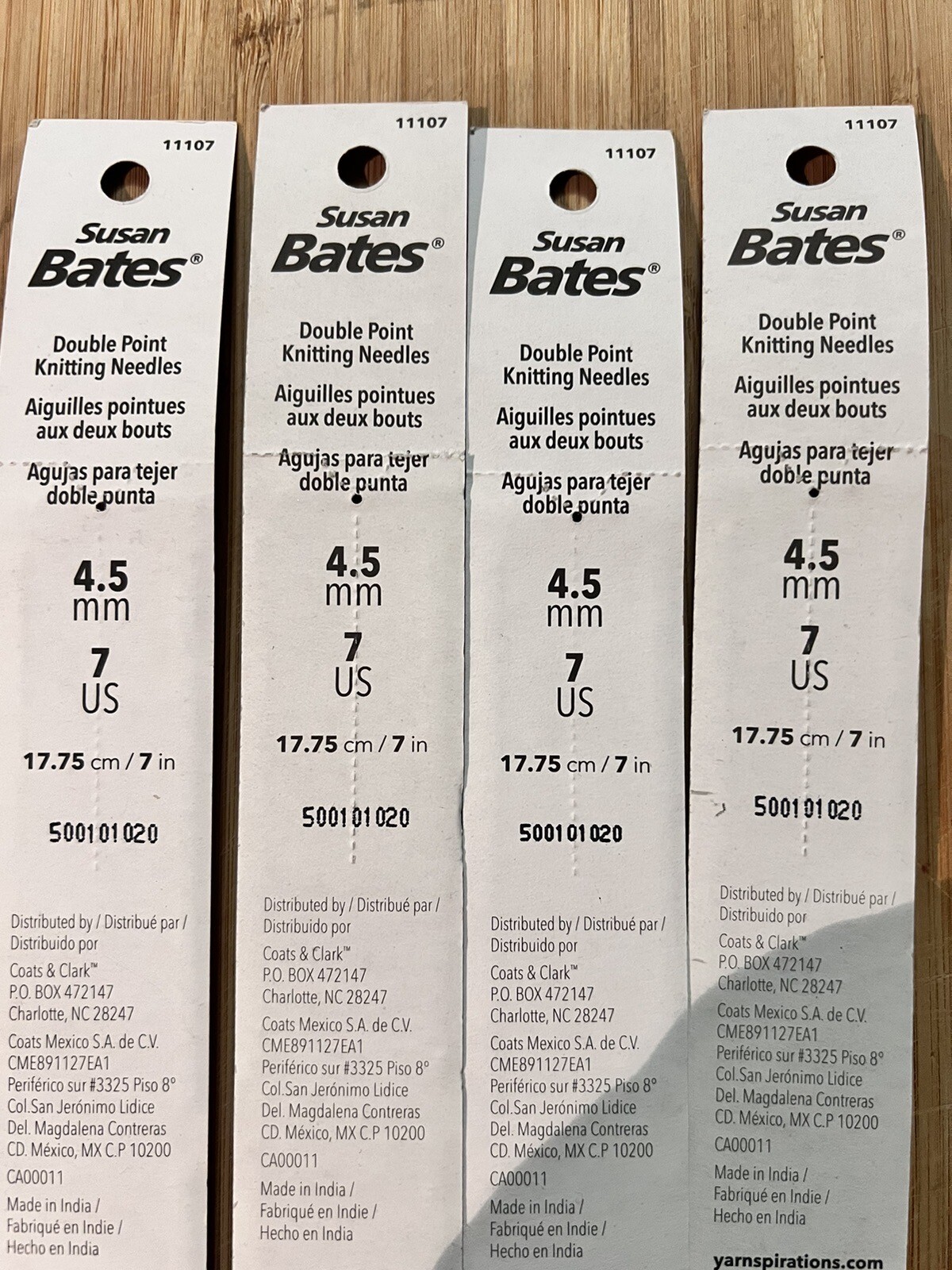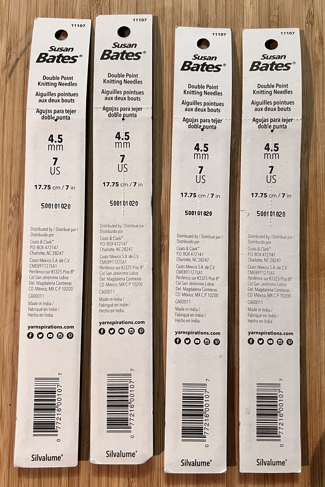 LOT OF 4 PKGS SUSAN BATES SILVALUME DOUBLE POINT KNITTING NEEDLES 7 IN 4.5mm NEW