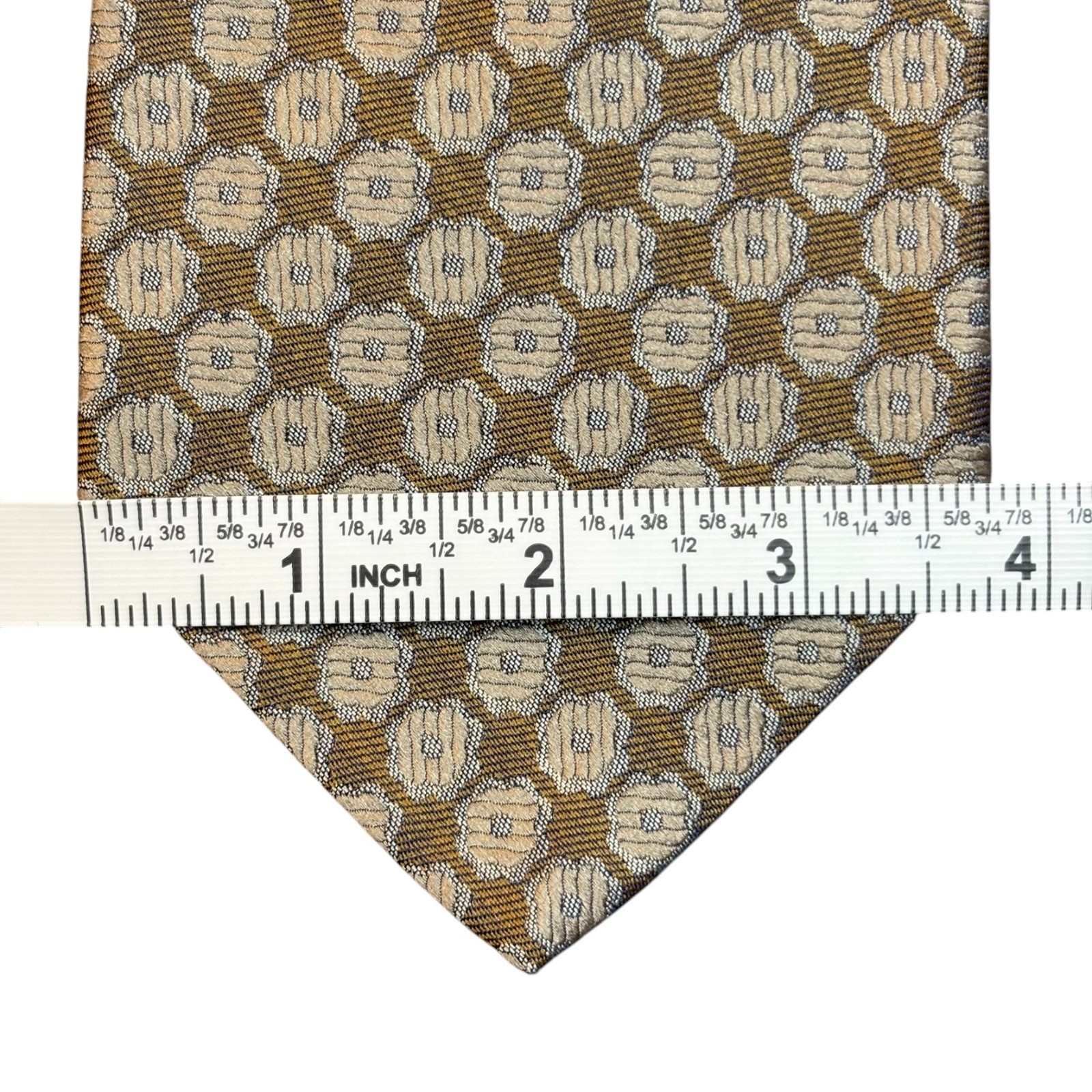 Ermenegildo Zegna Silk Tie Mens 56.5 x 3.75 Beige Tan Medallion Italy Necktie