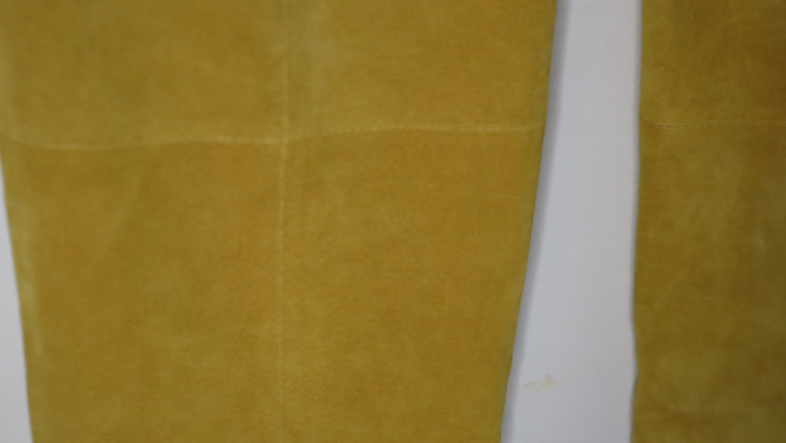 как выглядит Vtg 1990s TERRY LEWIS Classic Luxuries 100 LEATHER SUEDE PANTS Sz 8P Mustard фото