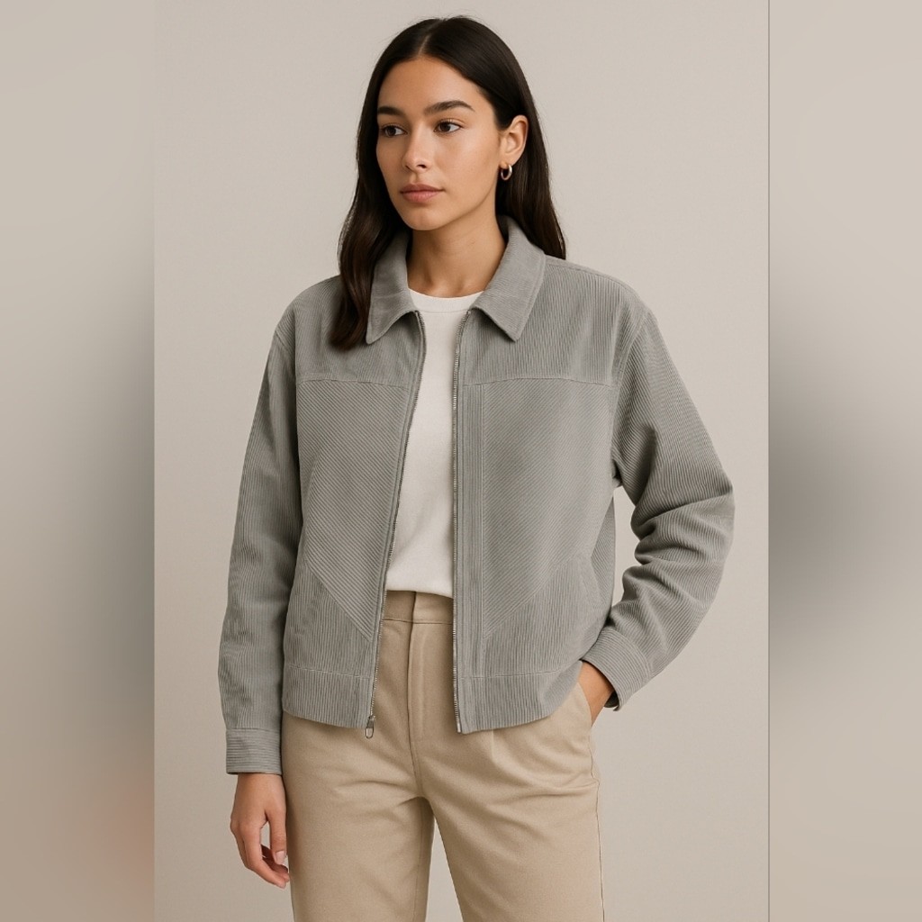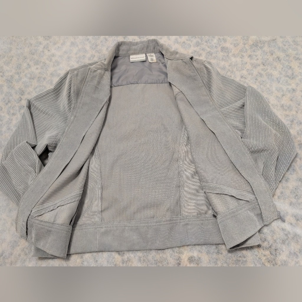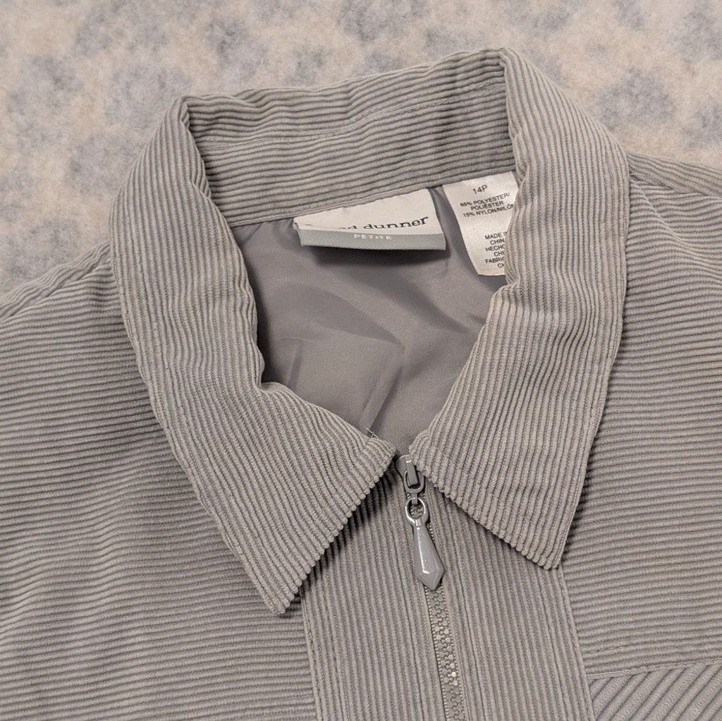 как выглядит Vintage Gray Corduroy Jacket Petite Zip Front Alfred Dunner Soft Neutral Y2K Ret фото