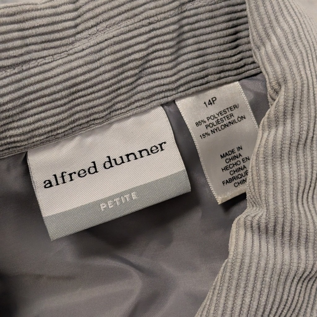 Vintage Gray Corduroy Jacket Petite Zip Front Alfred Dunner Soft Neutral Y2K Ret