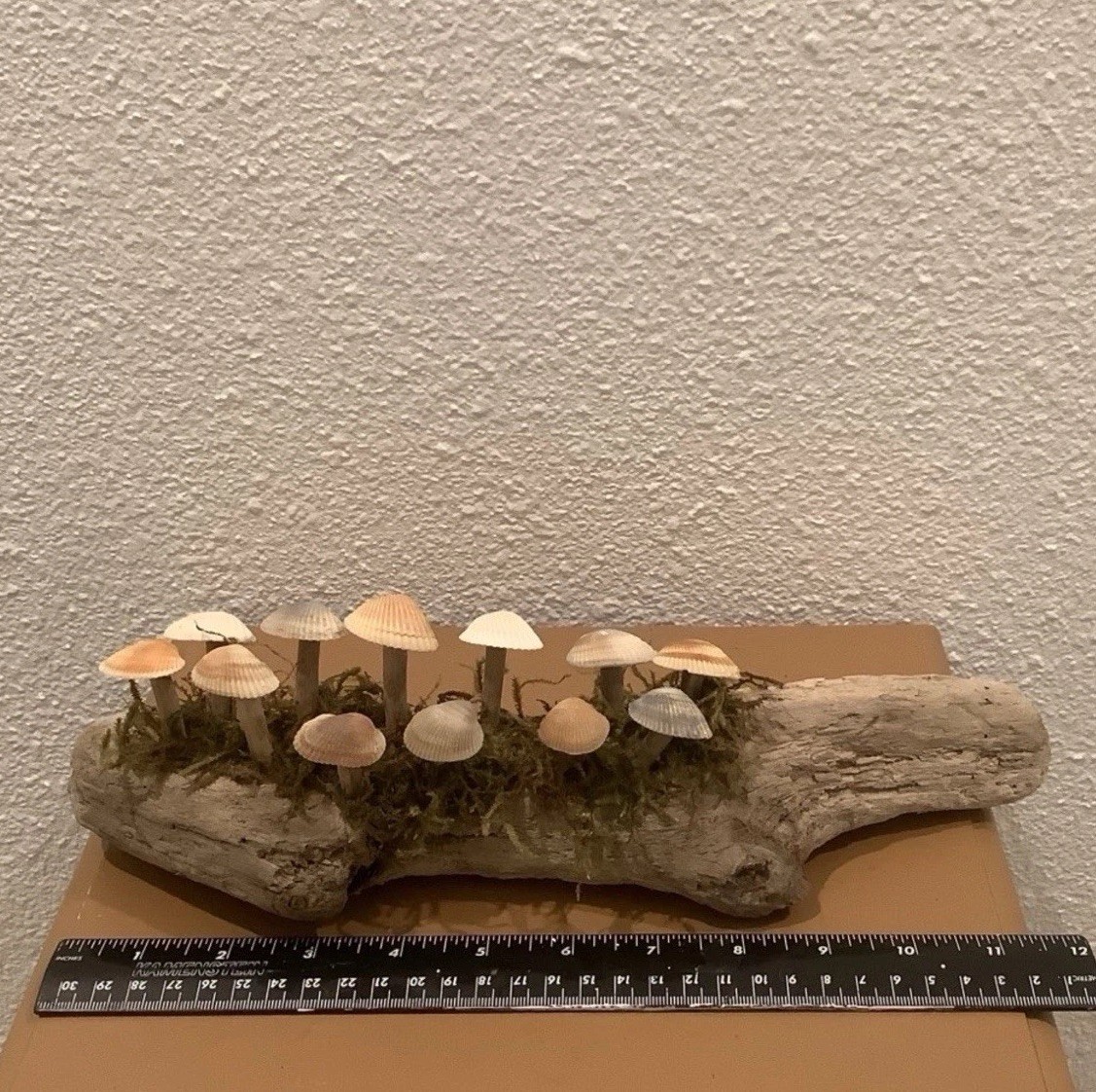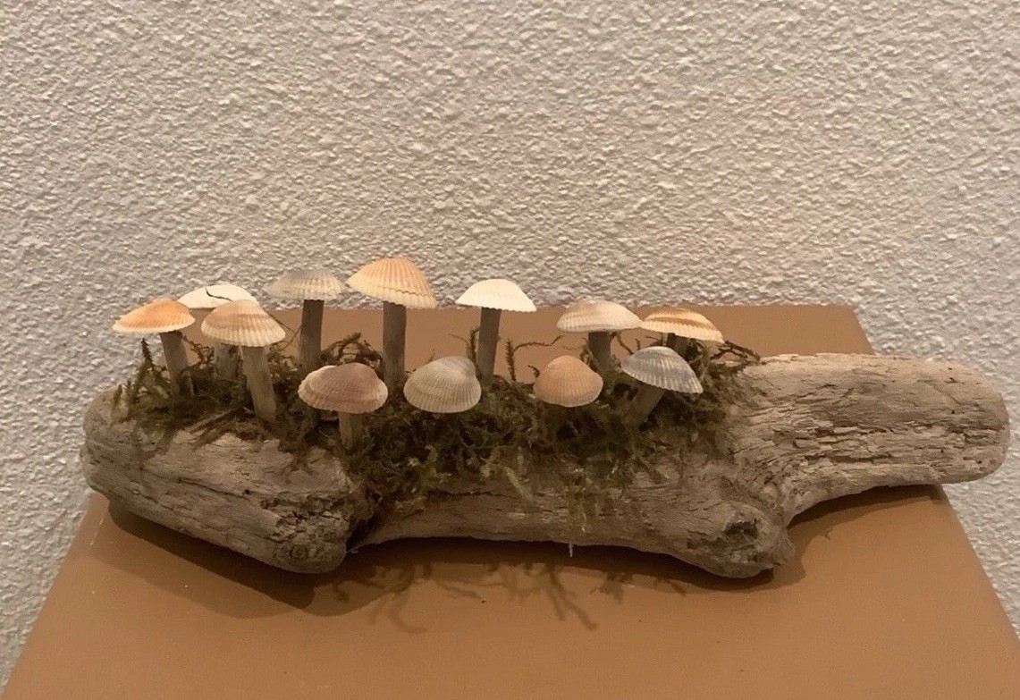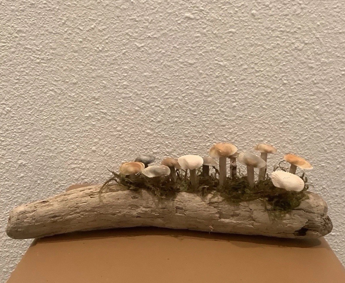 Driftwood Art, Driftwood Seashell Mushrooms , Mushroom Art