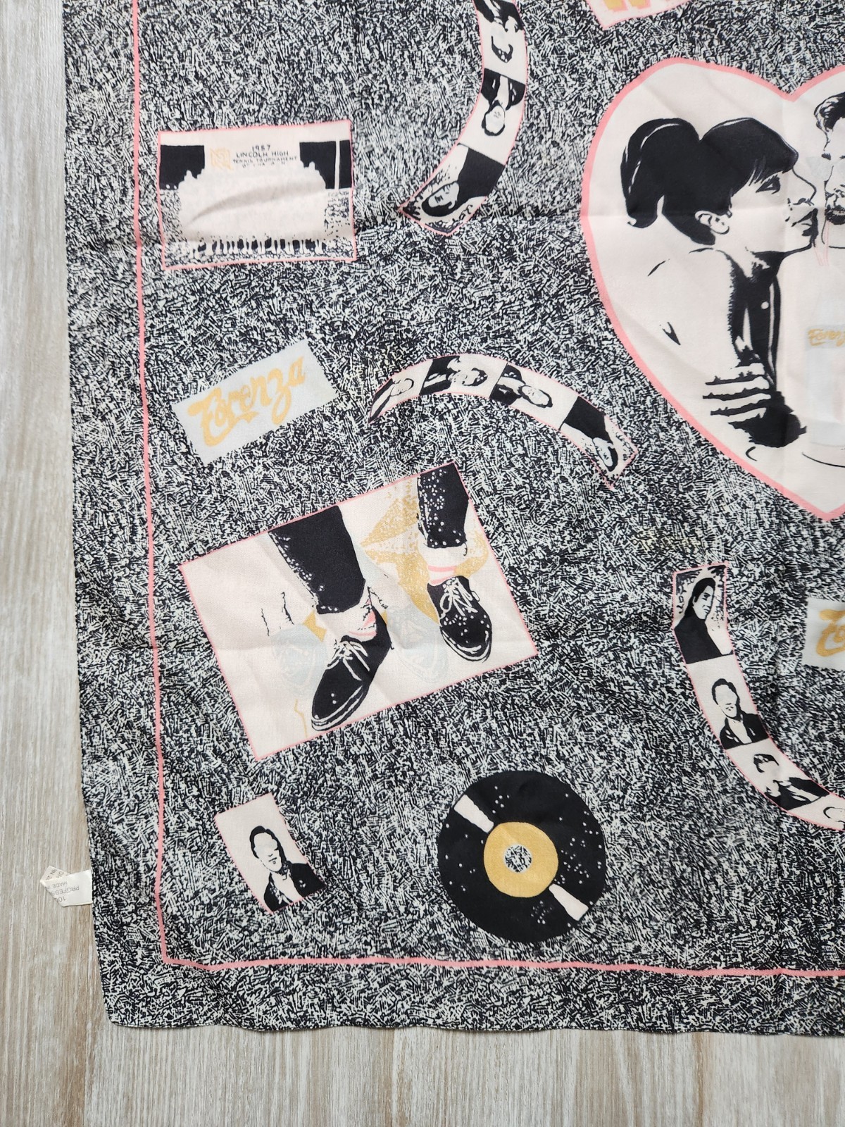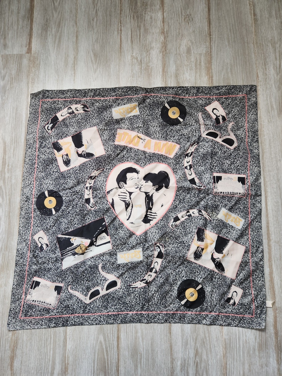 как выглядит VTG Forenza Scarf Win A Date Heart Record Print Retro Square Made in Italy фото