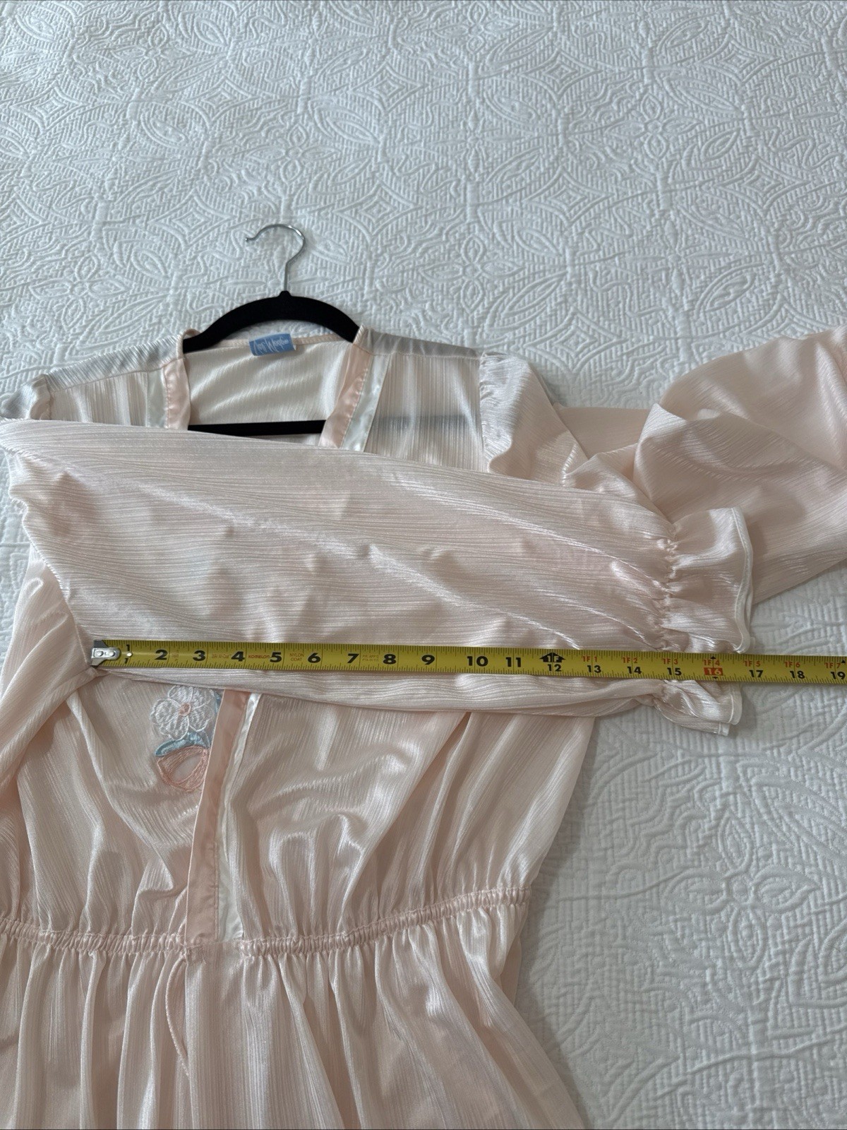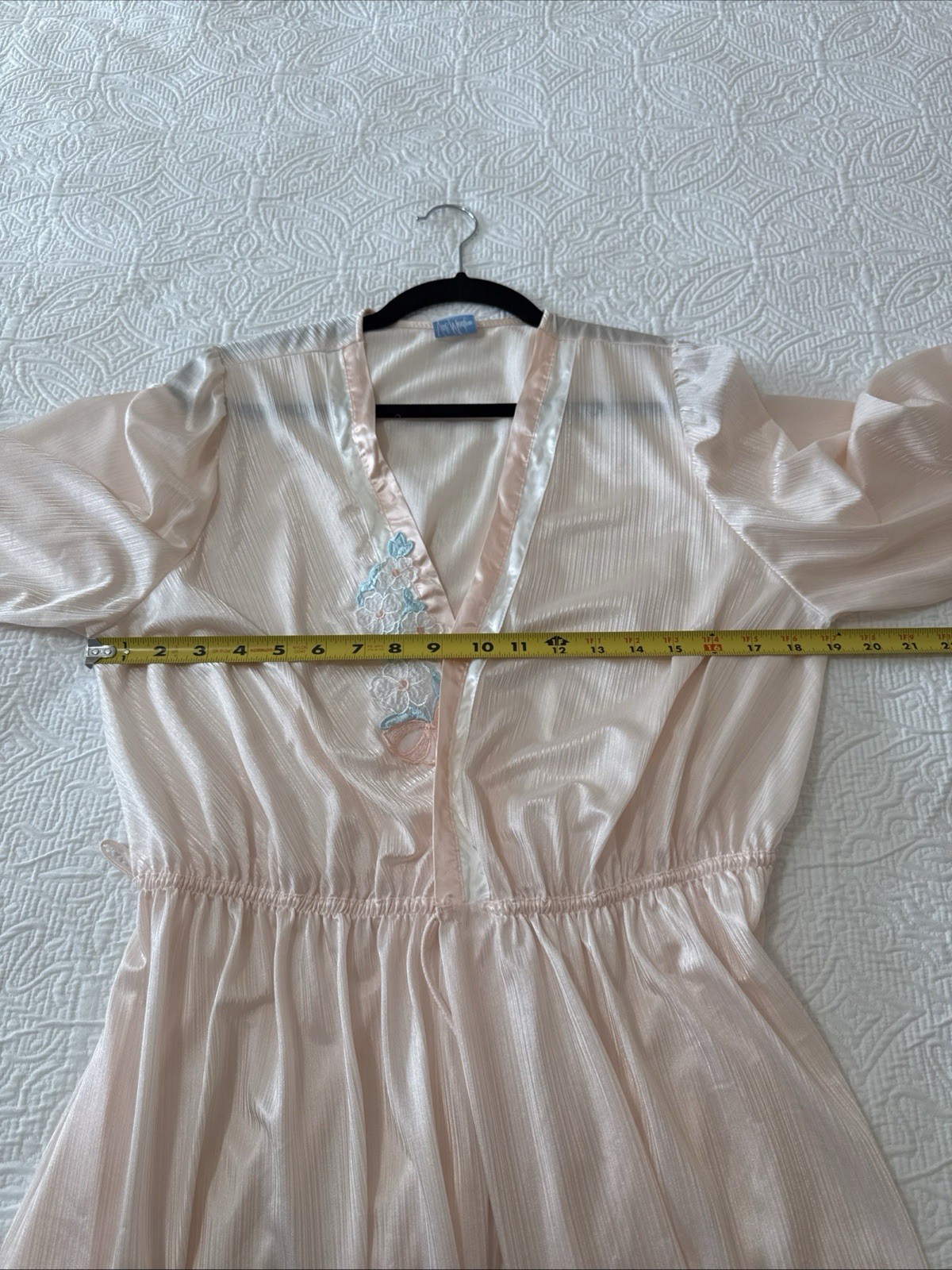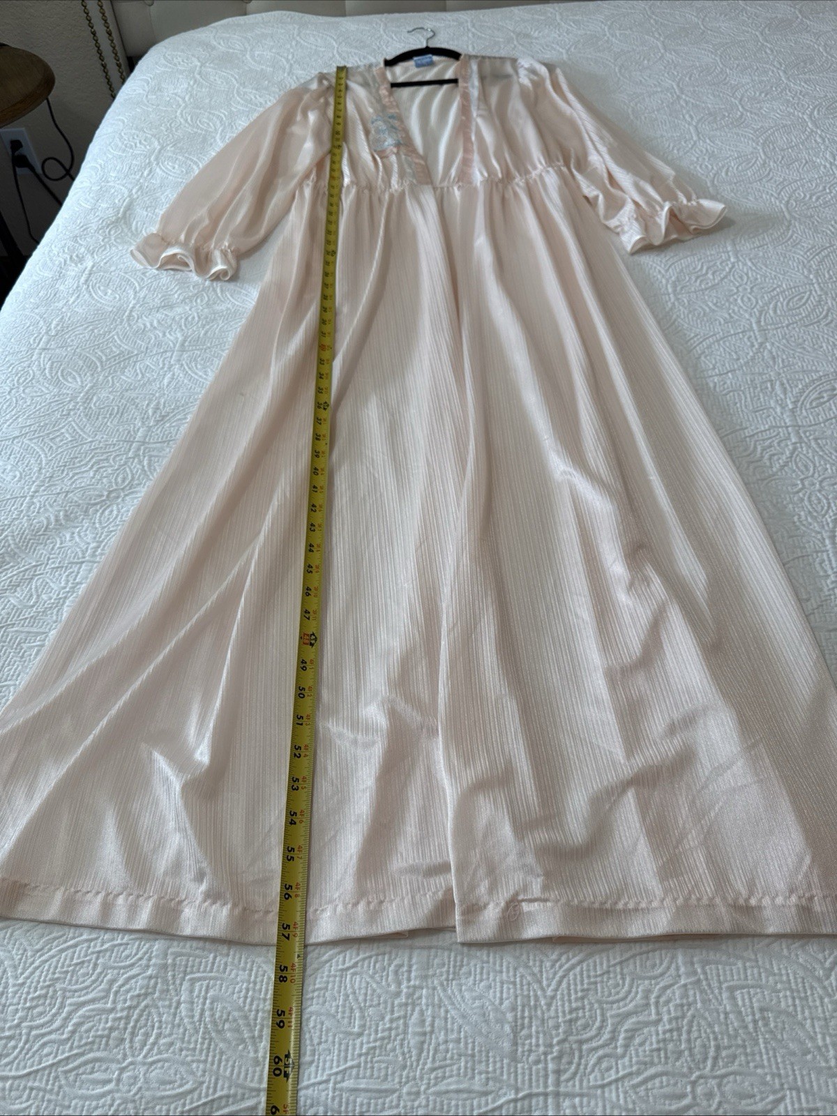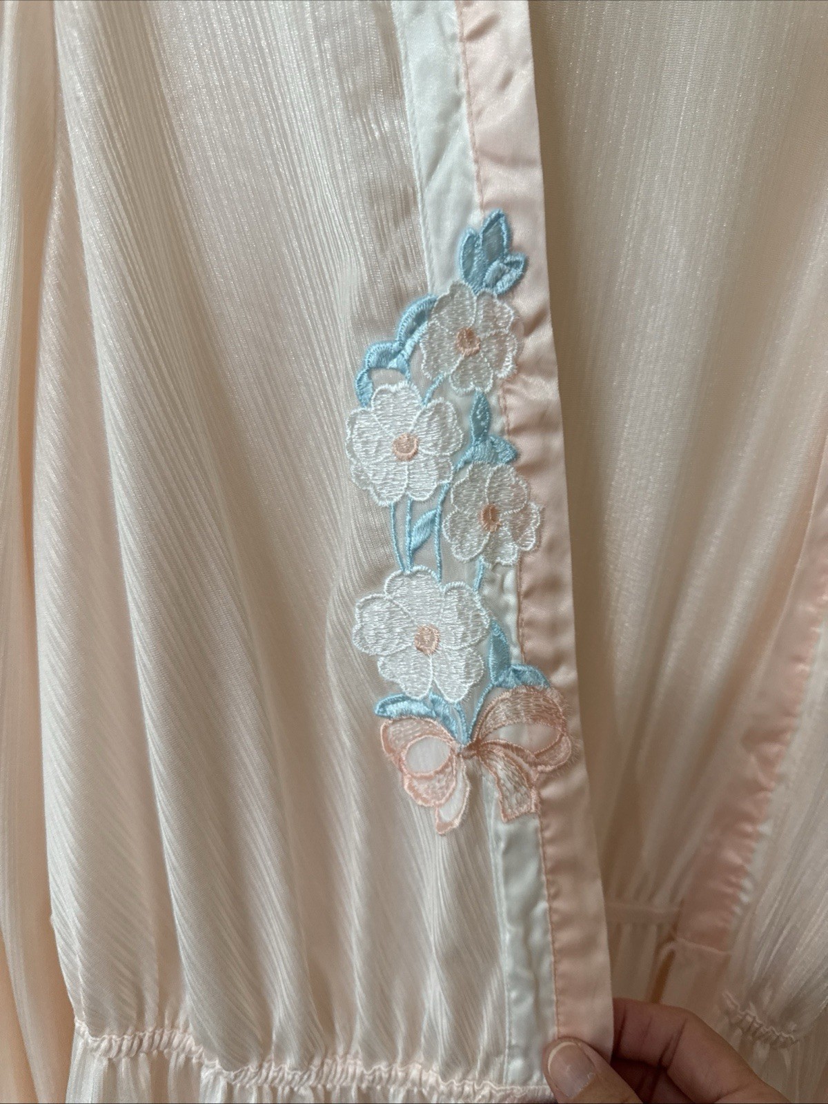 как выглядит VTG VAL MODE Maxi Nylon Robe Peignoir Pale Pink Satin Trim Appliqu Sz L USA фото