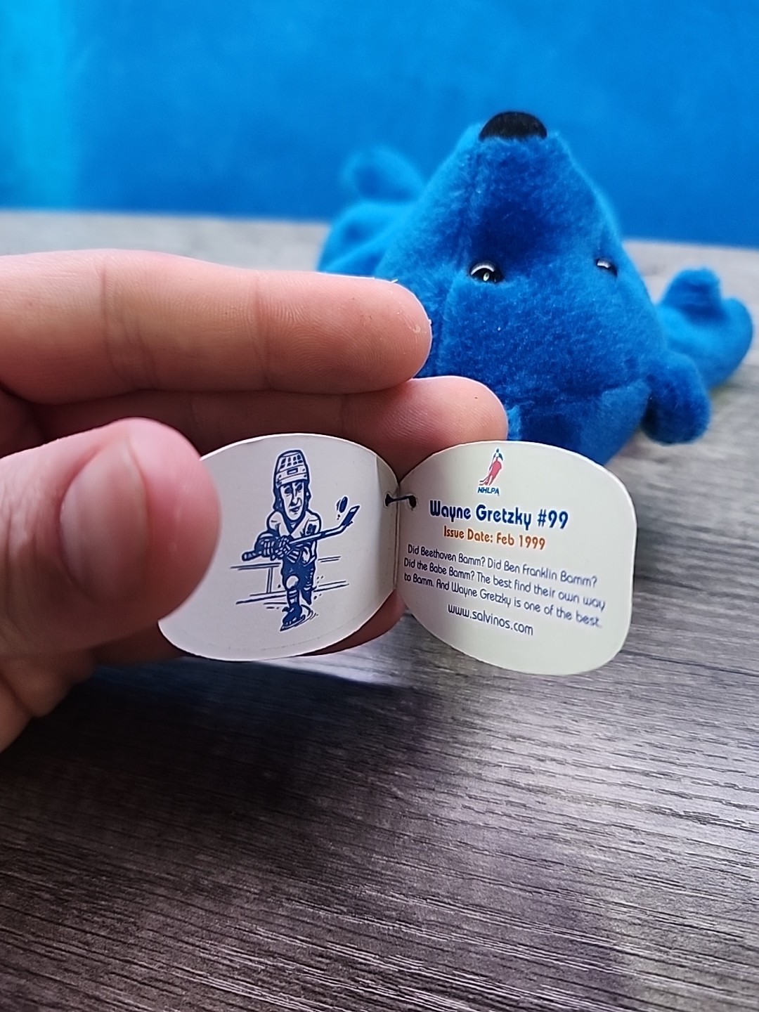 как выглядит Wayne Gretzky 99 Blue Plush Beanie Bear NHL 1999 Salvinos Bammers USA w/ Tag фото