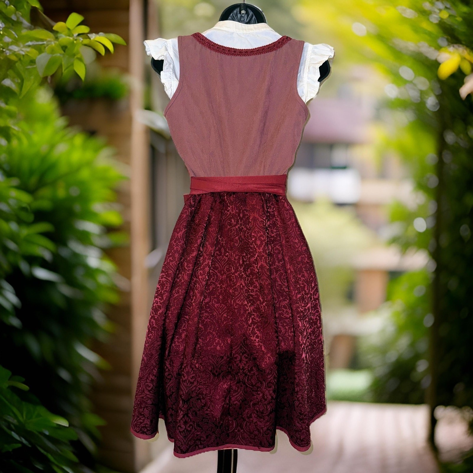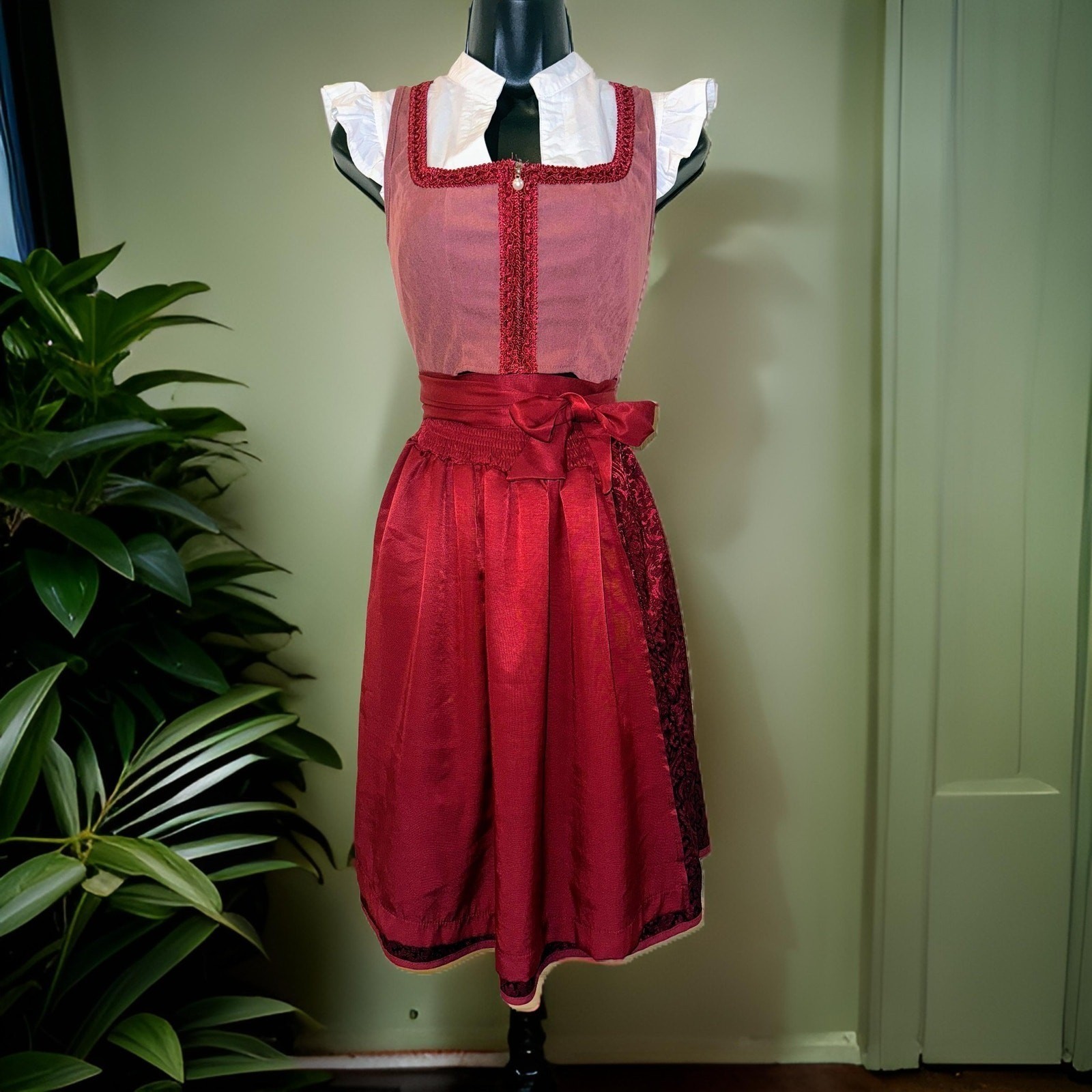 New Large Oktoberfest Red Burgundy Dirndl Dress Bavarian German Festival