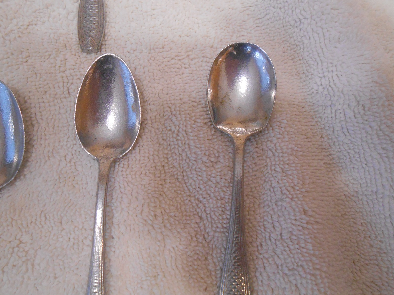 как выглядит vintage 26 piece childs toy aluminum silverware set made in germany фото