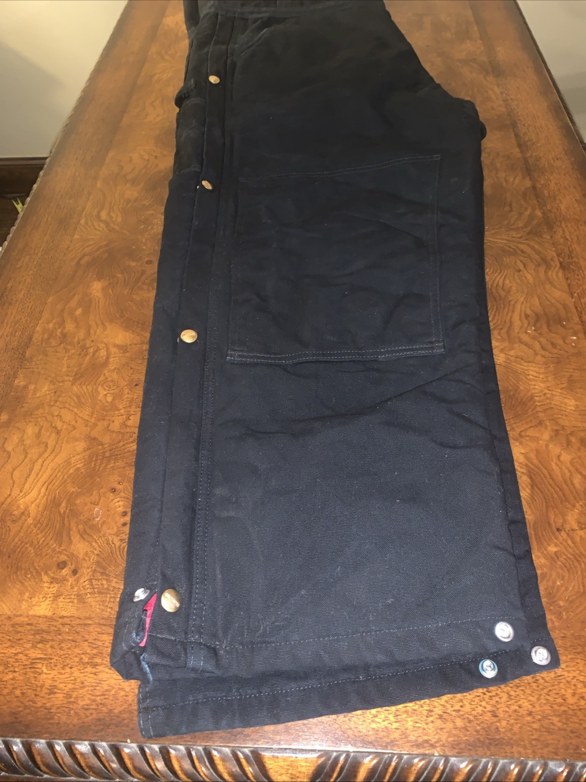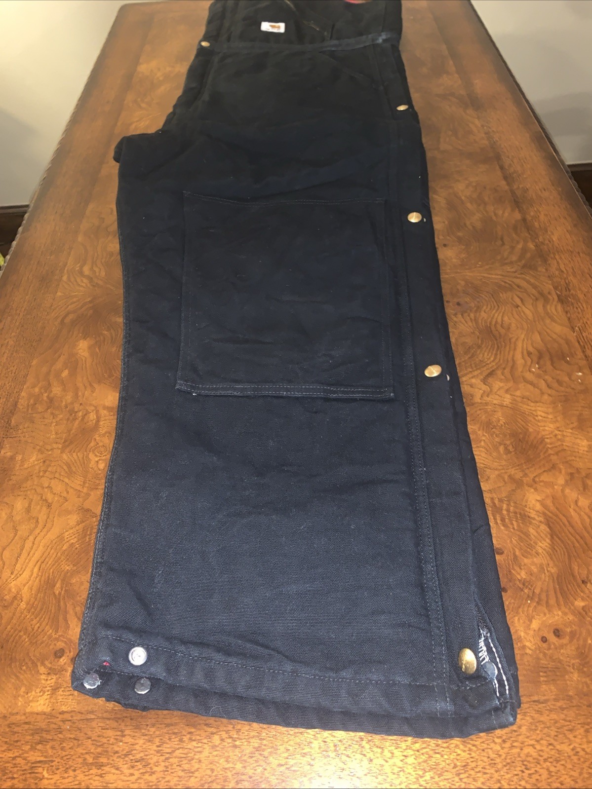как выглядит Carhartt R38 BLK 42x28 Zip To Waist Quilt Lined Duck Bib Overalls Double Knee фото
