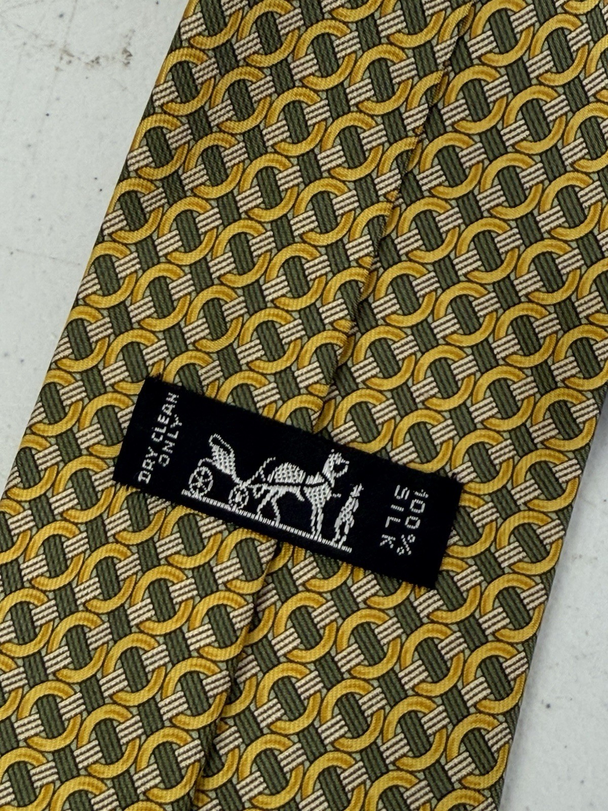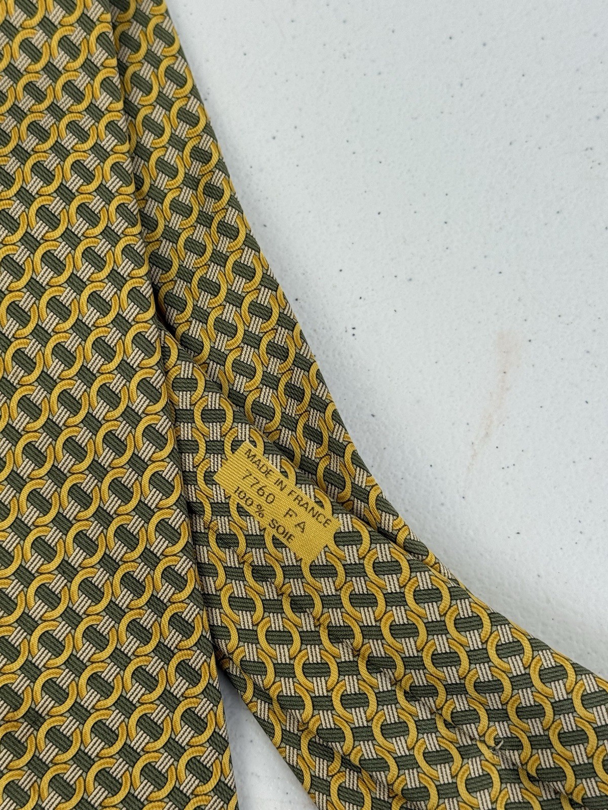 как выглядит HERMES Necktie Tie Green Yellow all-over pattern 100 Silk made in France 7760 фото
