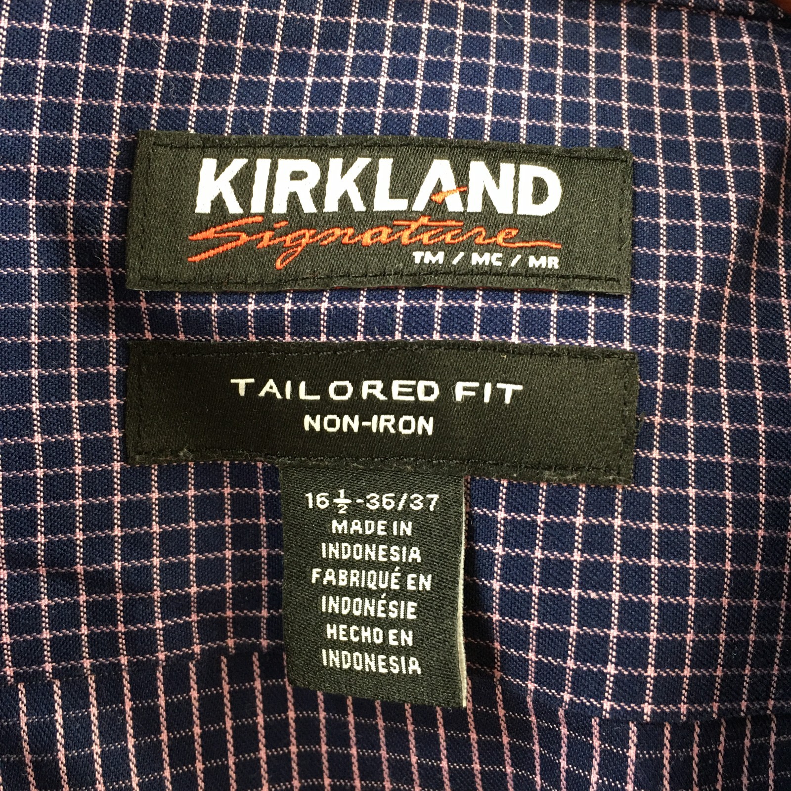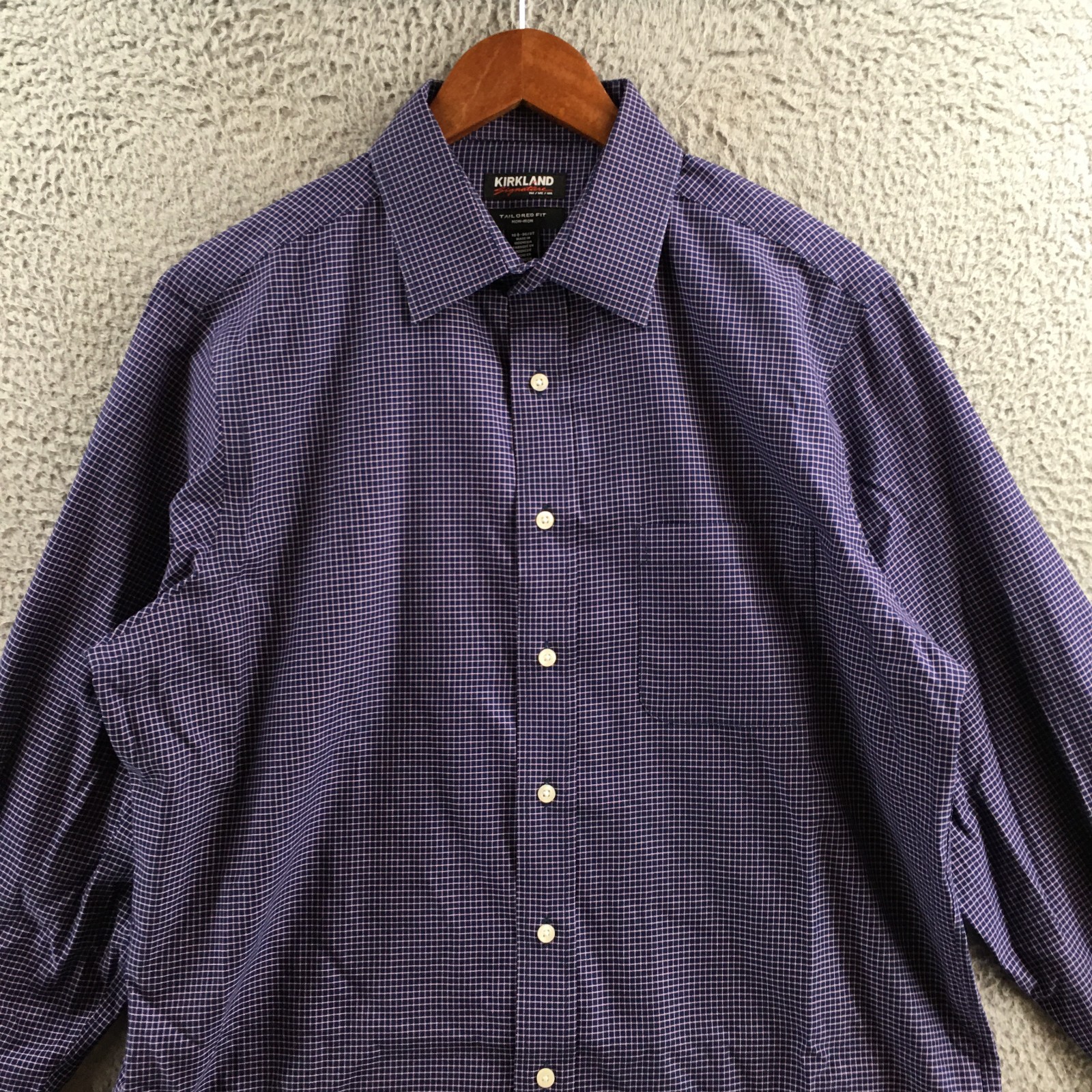 Kirkland Signature Tailored Fit Dress Shirt Mens 16.5 Blue Plaid Long Sleeve