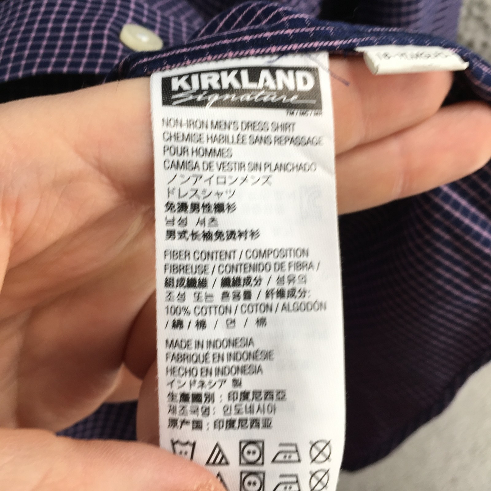 как выглядит Kirkland Signature Tailored Fit Dress Shirt Mens 16.5 Blue Plaid Long Sleeve фото