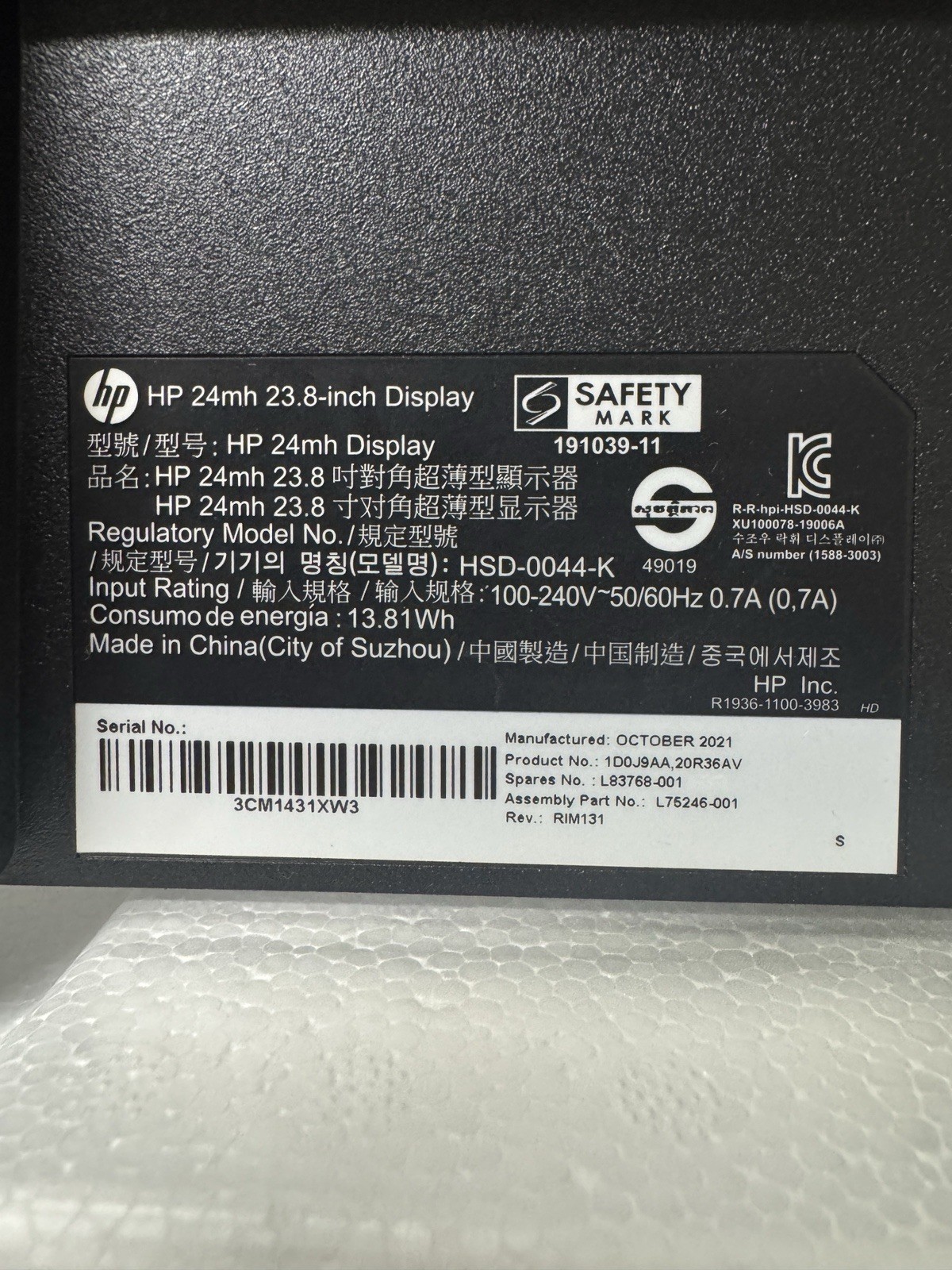 HP 24mh 23.8 IPS Monitor Full HD 1080p HDMI DisplayPort Speakers