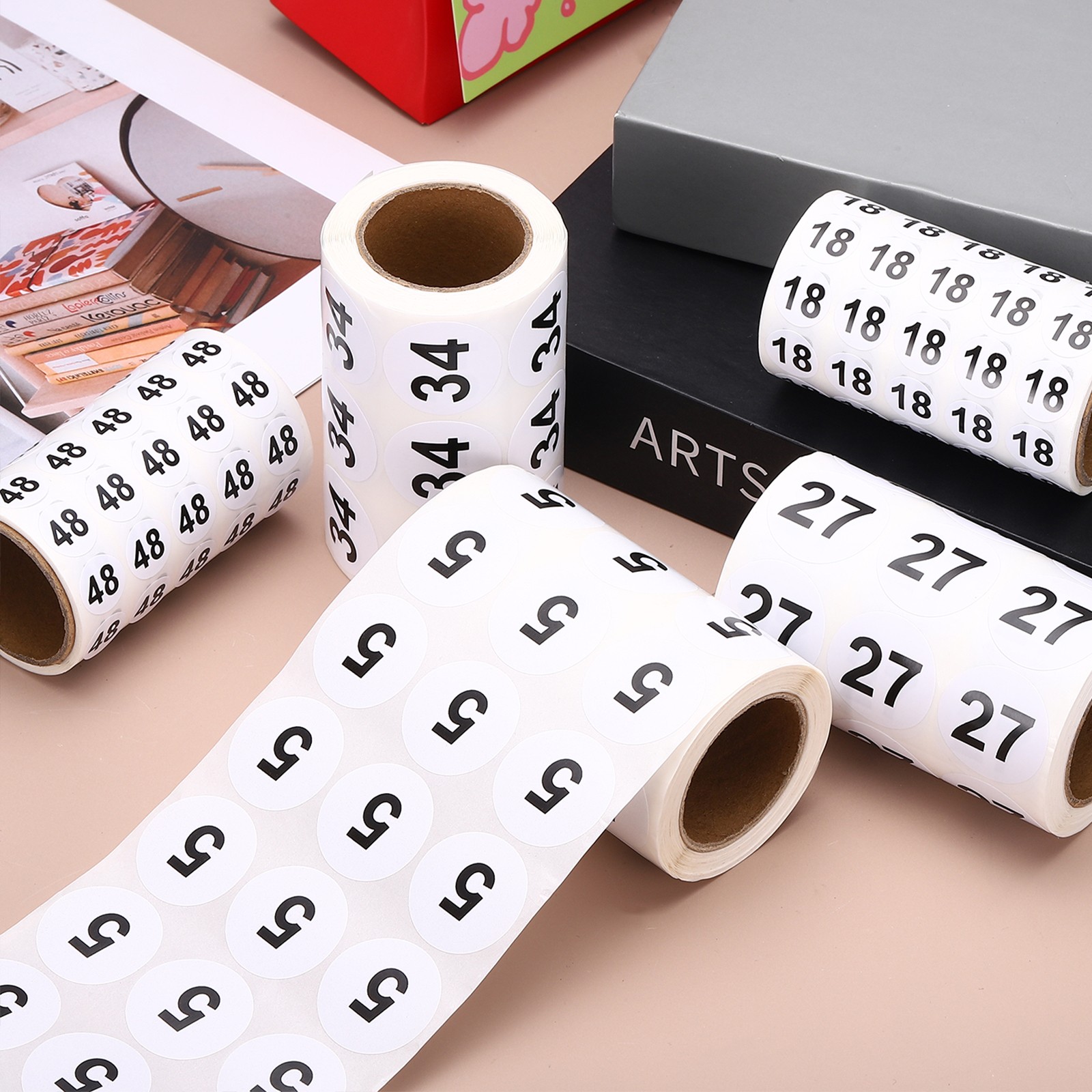 1.2 Small Round Number Stickers Roll, 1000 Pcs Circle Labels, Black Number 21