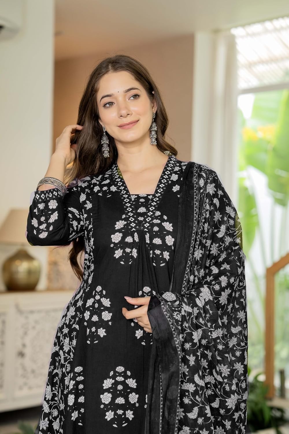 Womens Pure Cotton Block Printed Ethnic Wear Kurta Palazzo Pants Dupatta Set