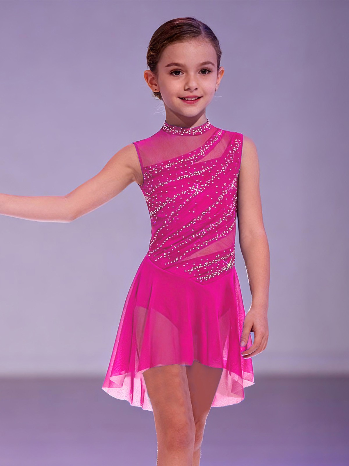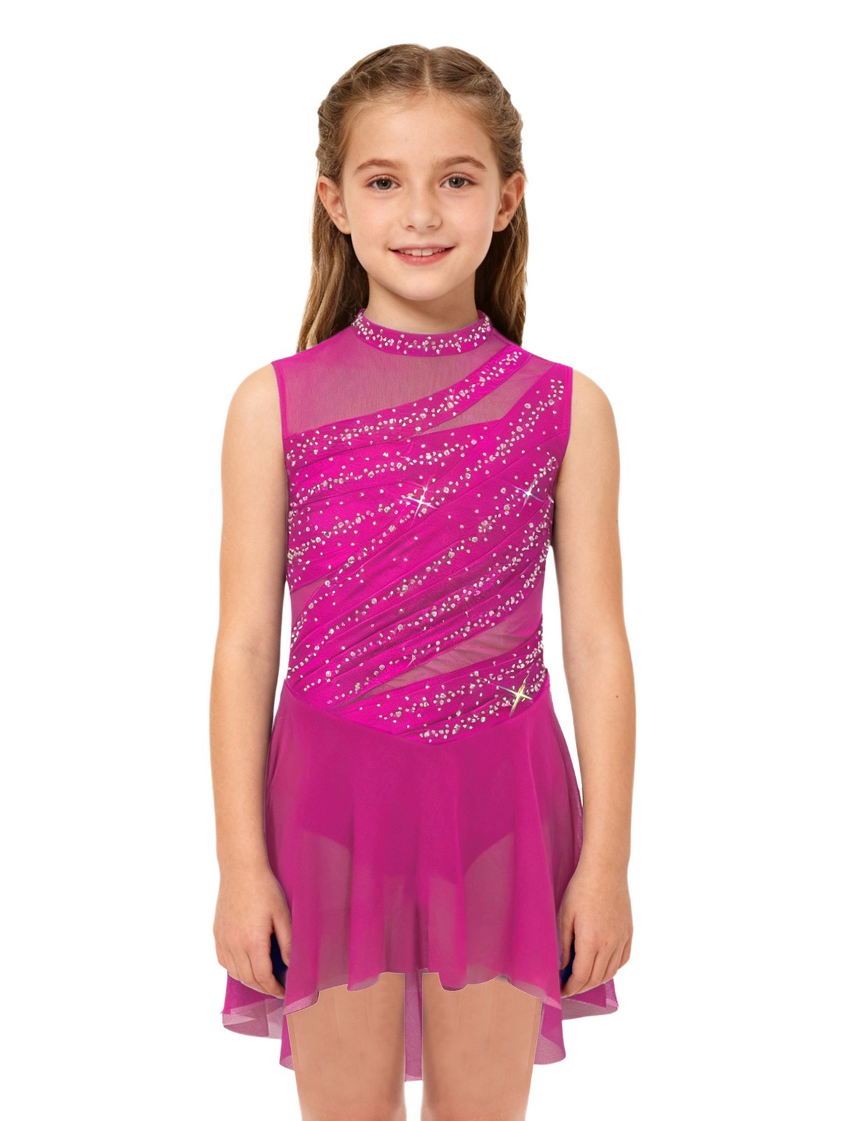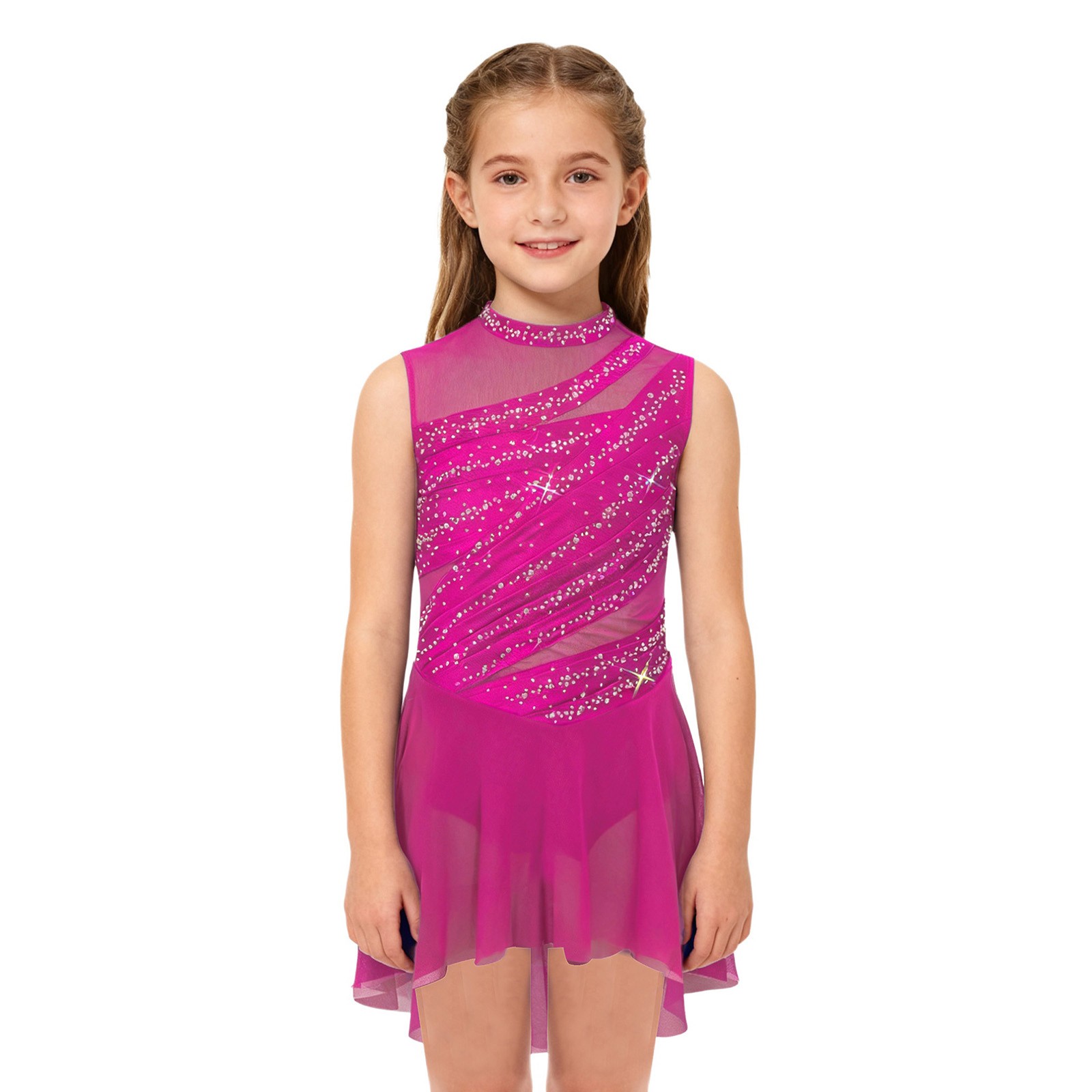 Kids Girls Lyrical Dance Leotard Dress Sleeveless High Low Figure Skating Dress