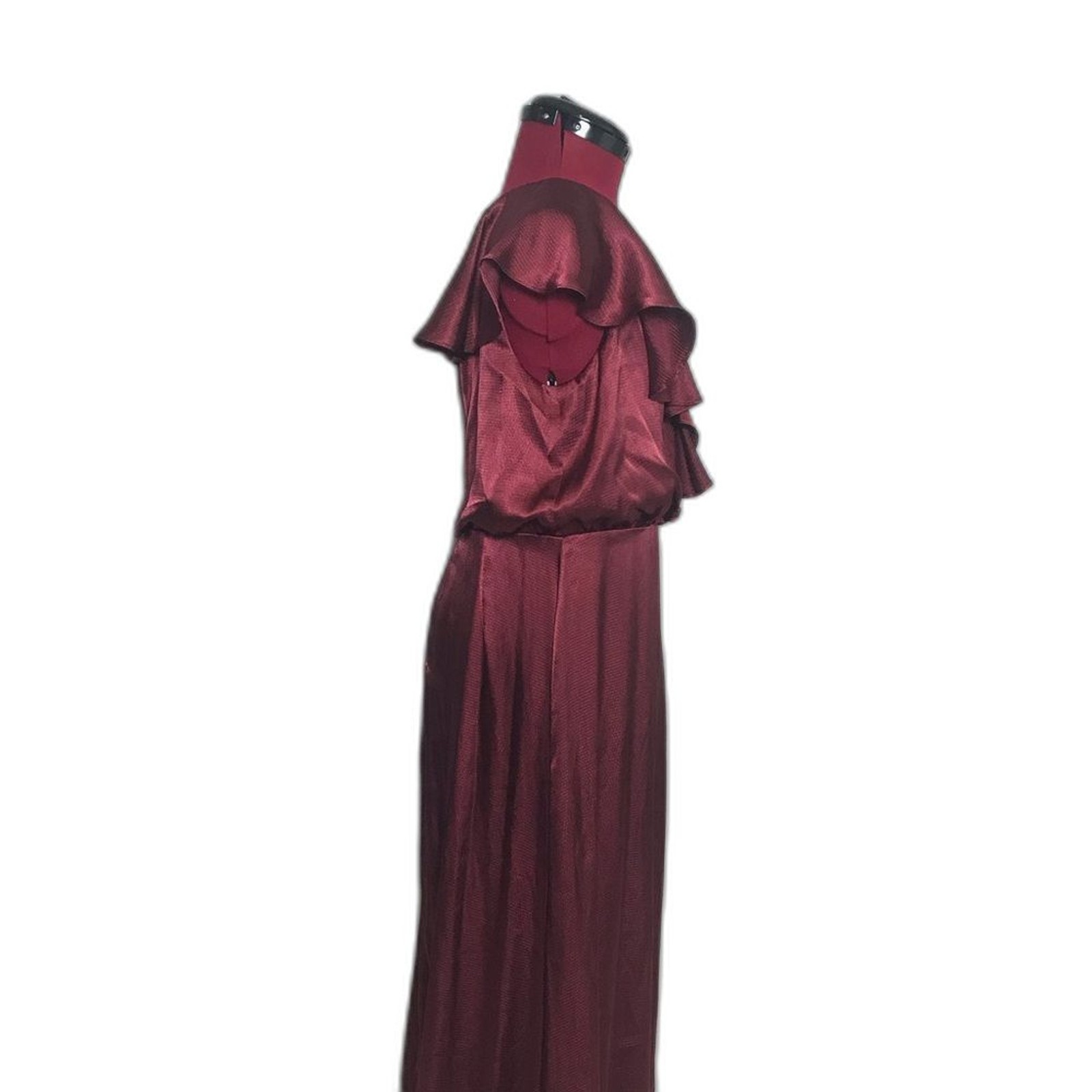 как выглядит Adrianna Papell Deep Wine Hammered Satin Gown Womens Size 10 Ruffle Accent NWT фото