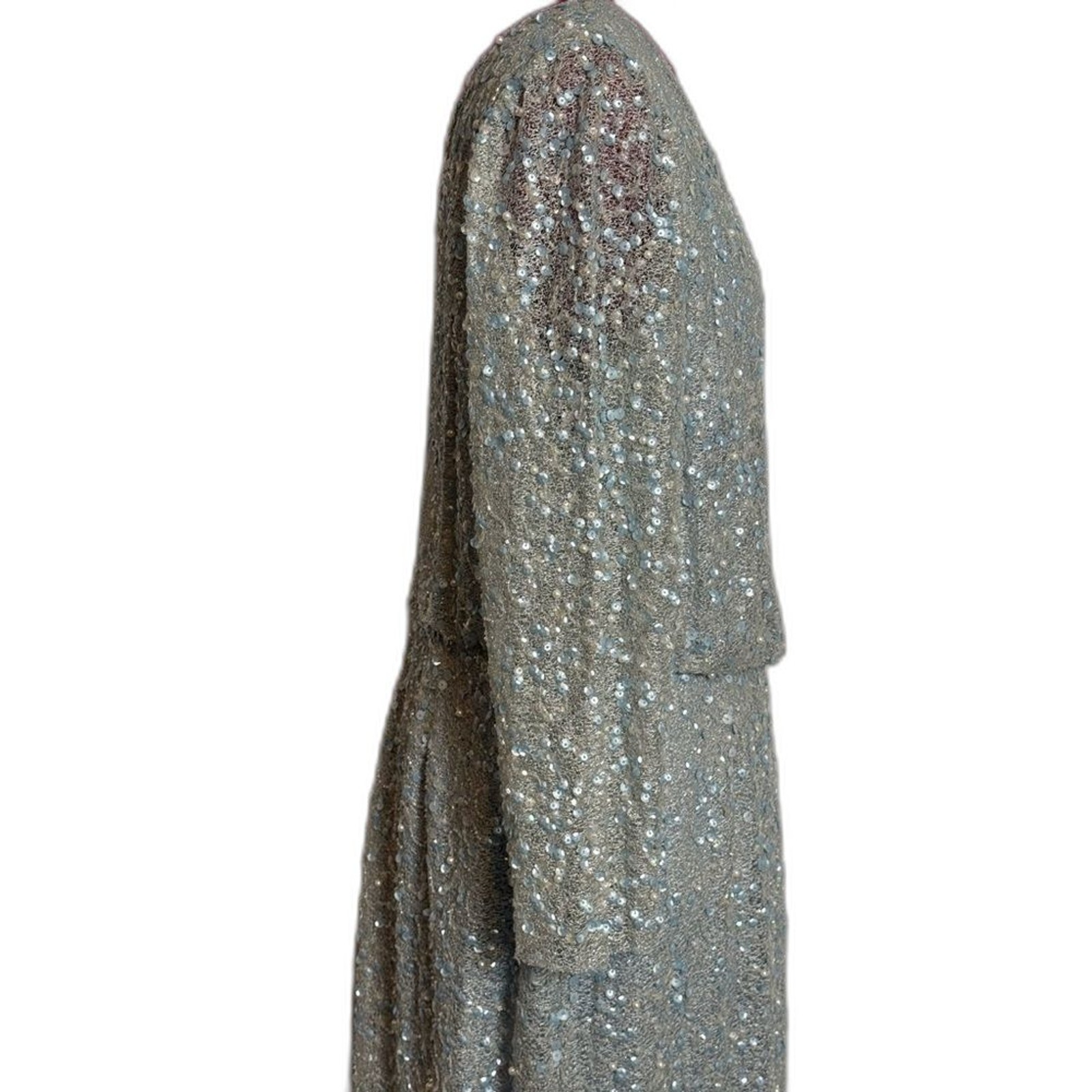 как выглядит Adrianna Papell Long Sleeve Sequin Gown Size 10 Blue Heather/Silver Metallic NWT фото