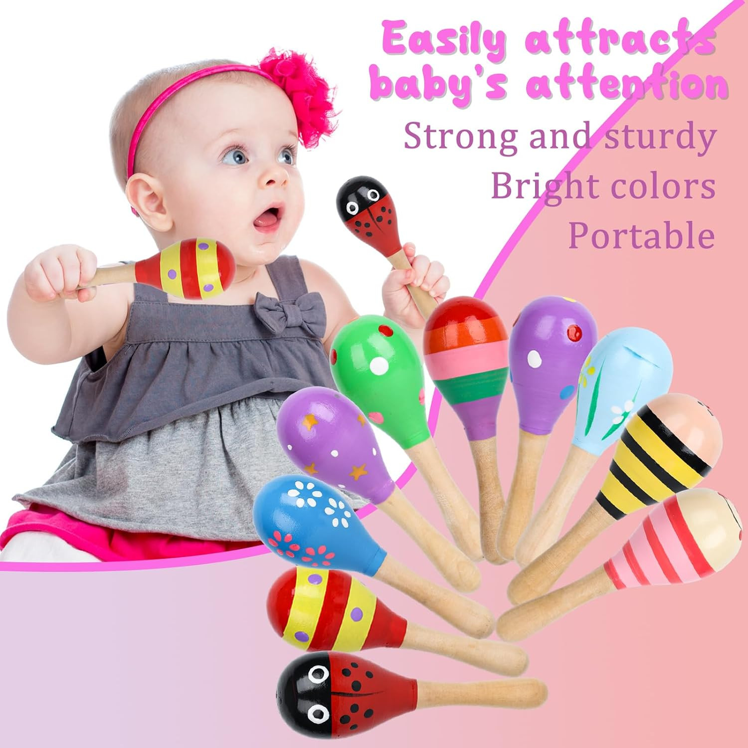 10PCS Mini Wooden Maracas, Maracas for Toddler Musical Instruments Wooden Shaker