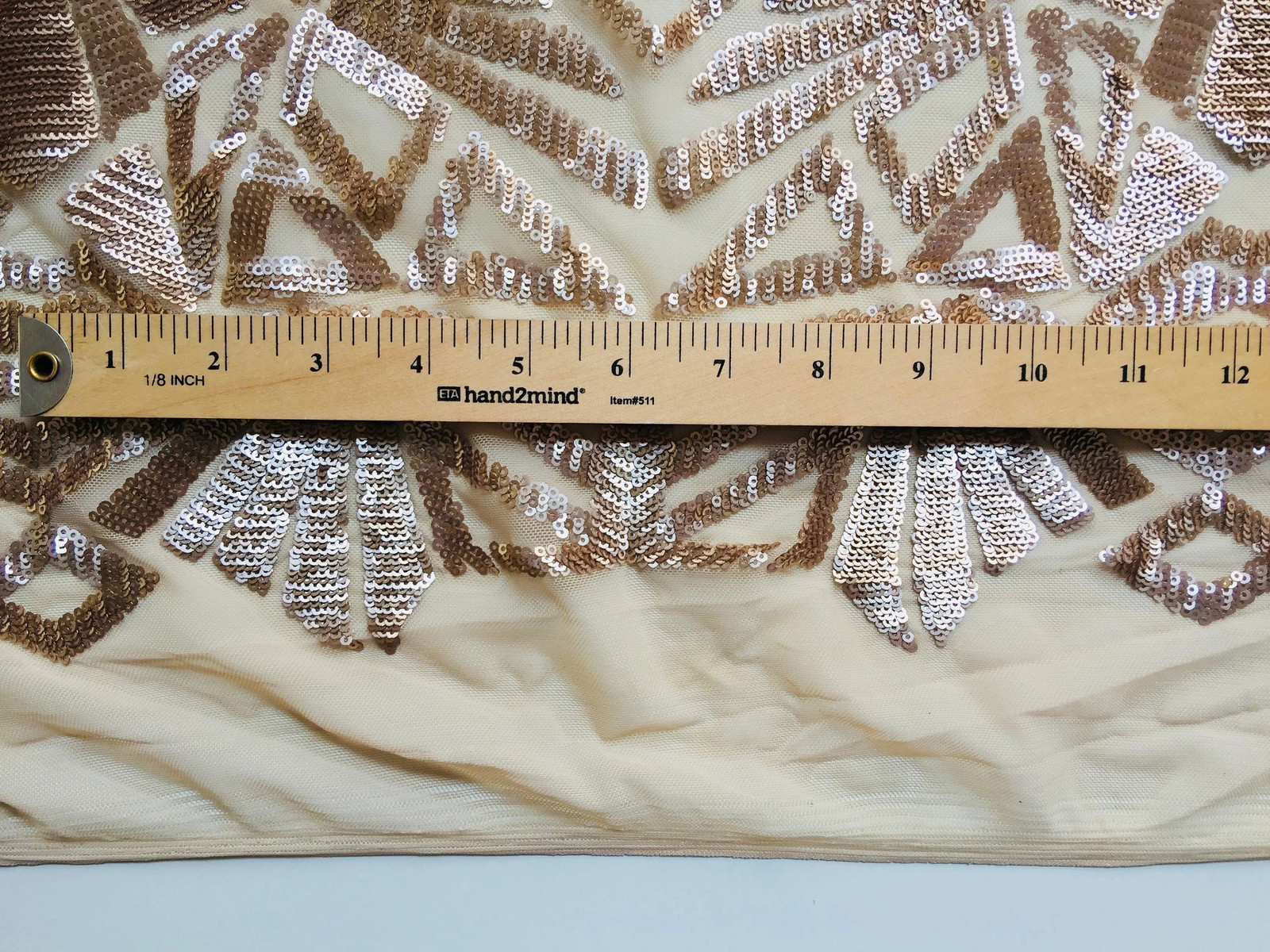 как выглядит Gia CHAMPAGNE Geometric Sequins on Mesh Lace Fabric by the Yard - 10101 фото