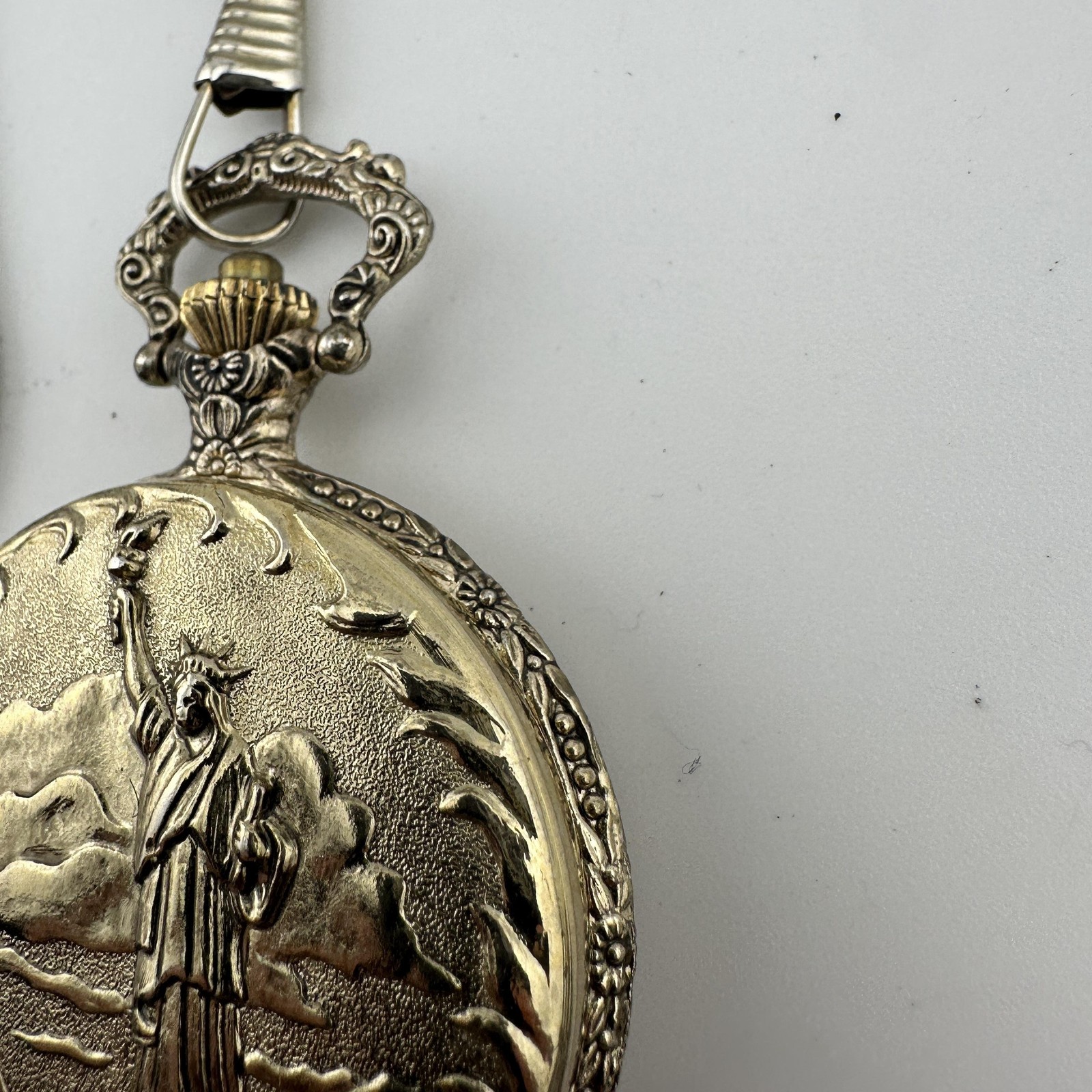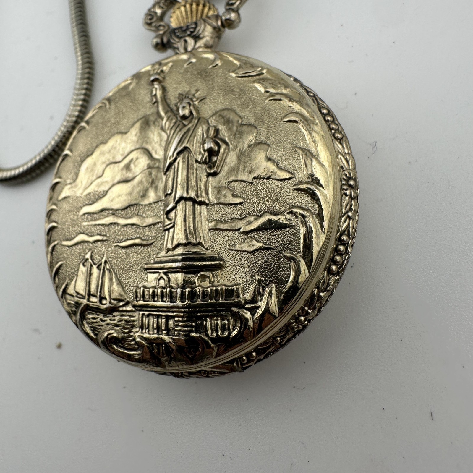 как выглядит Limited Edition Statue Of Liberty Commemorative Pocket Watch W Chain - New Batt фото