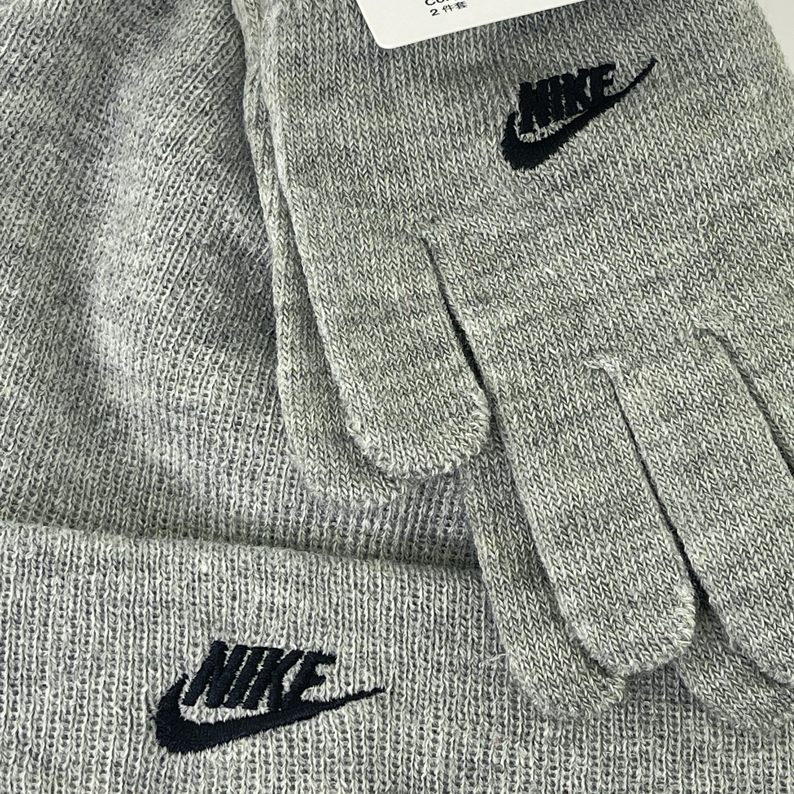 New Nike Youth Big Boys Lurex Futura Beanie Hat Gloves 2 Piece Set, Gray