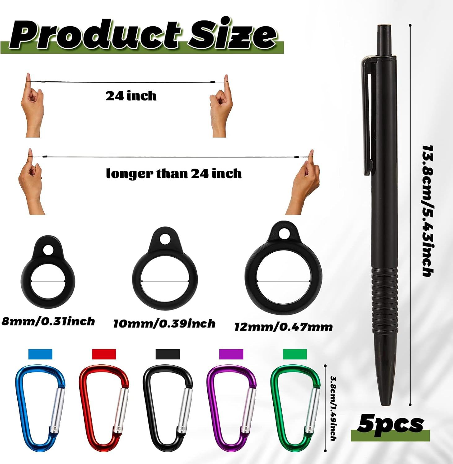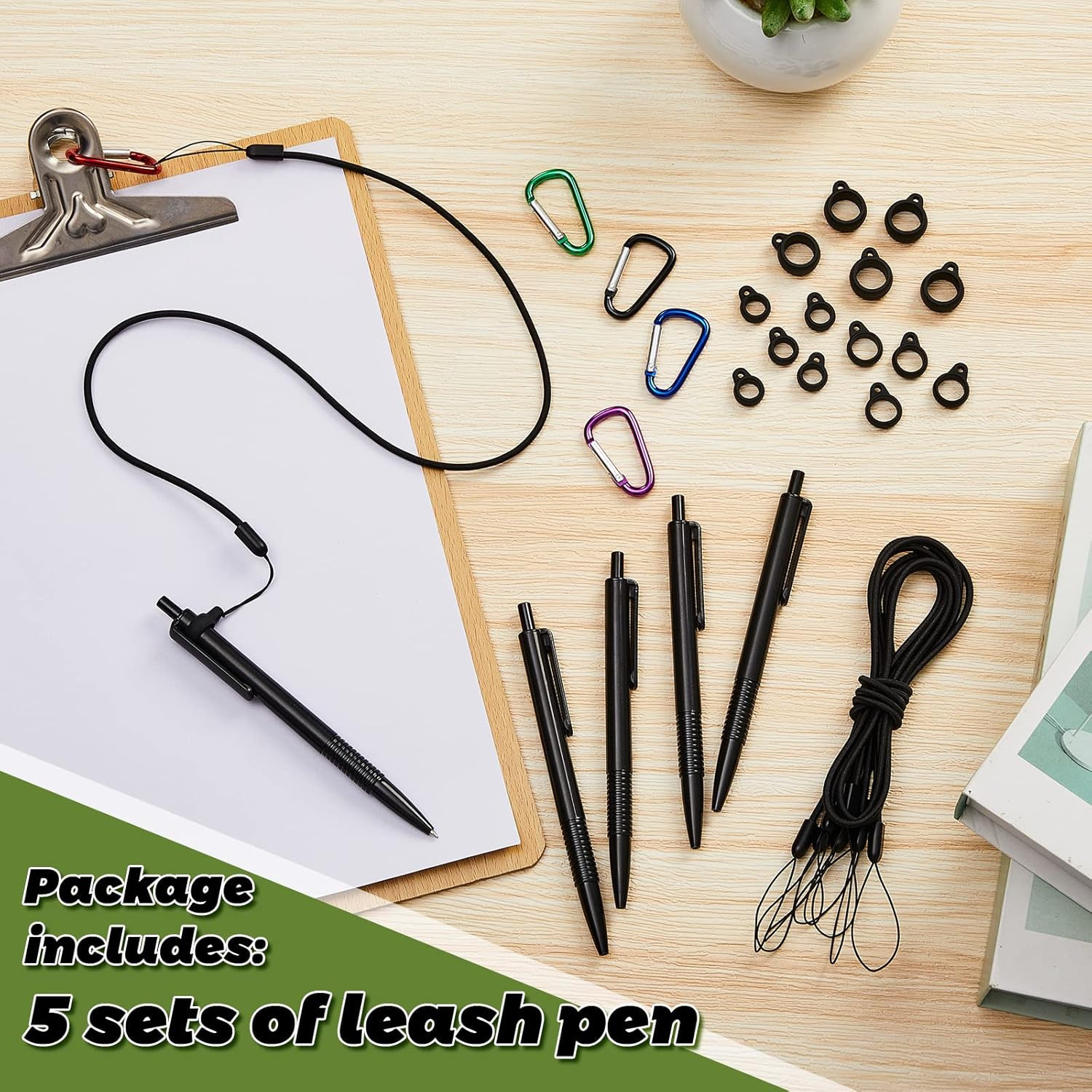5 Sets 24 Inch Pen Leash for Clipboard Lanyard Holder Pen Silicone Ring Buckle f
