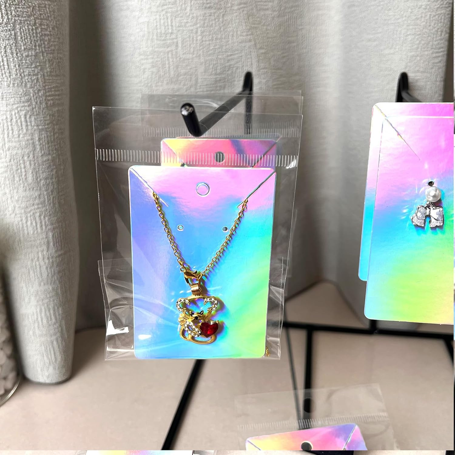 300Pcs Holographic Earring Card Holder Paper Tags for DIY Ear Studs Necklace Jew
