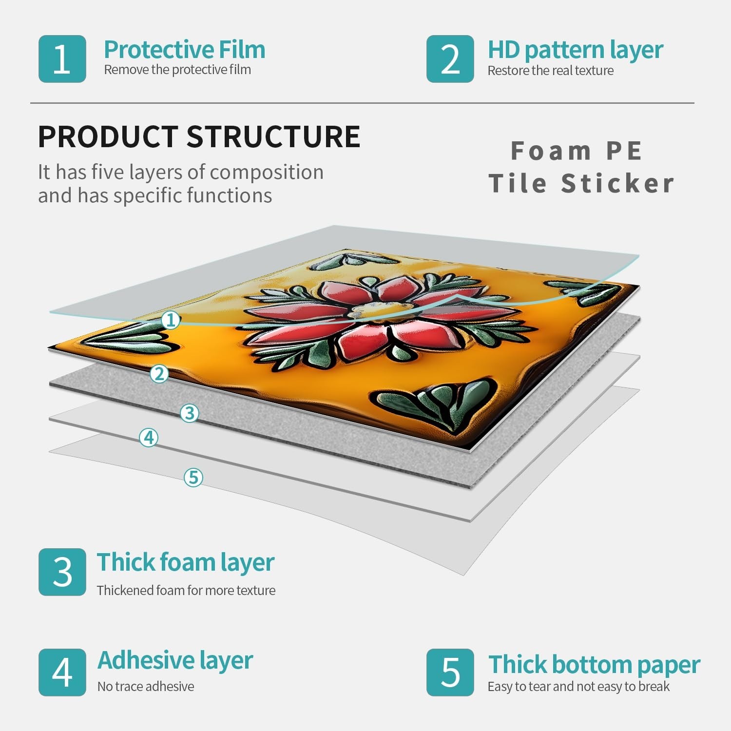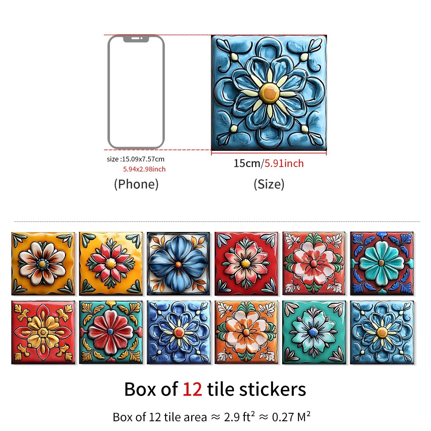 6x6 Tile Stickers Peel and Stick, Stick on Backsplash Tile Decals,Waterproof ...