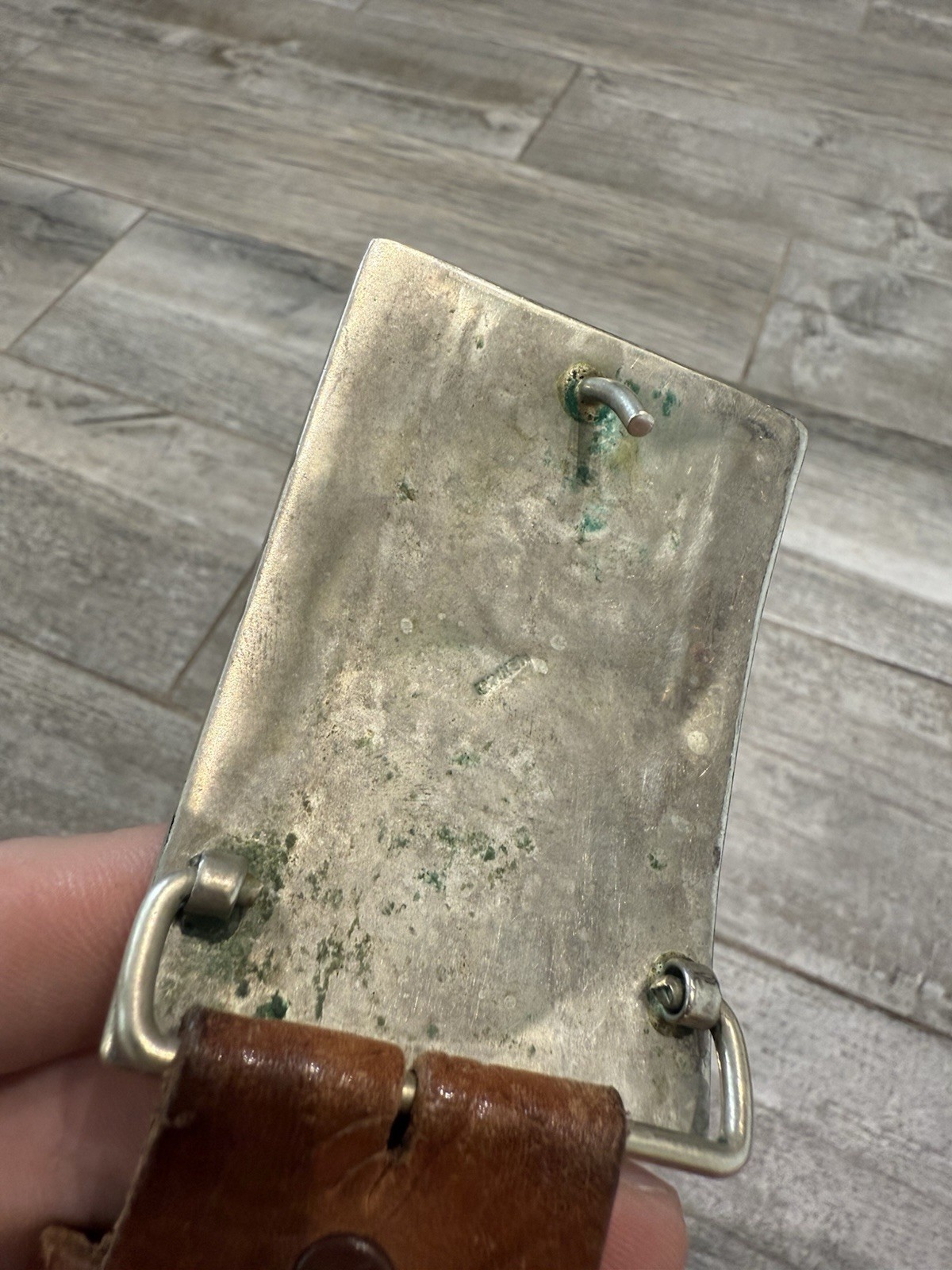 как выглядит Vintage belt sterling silver belt buckle with semi precious inlays from Mexico фото