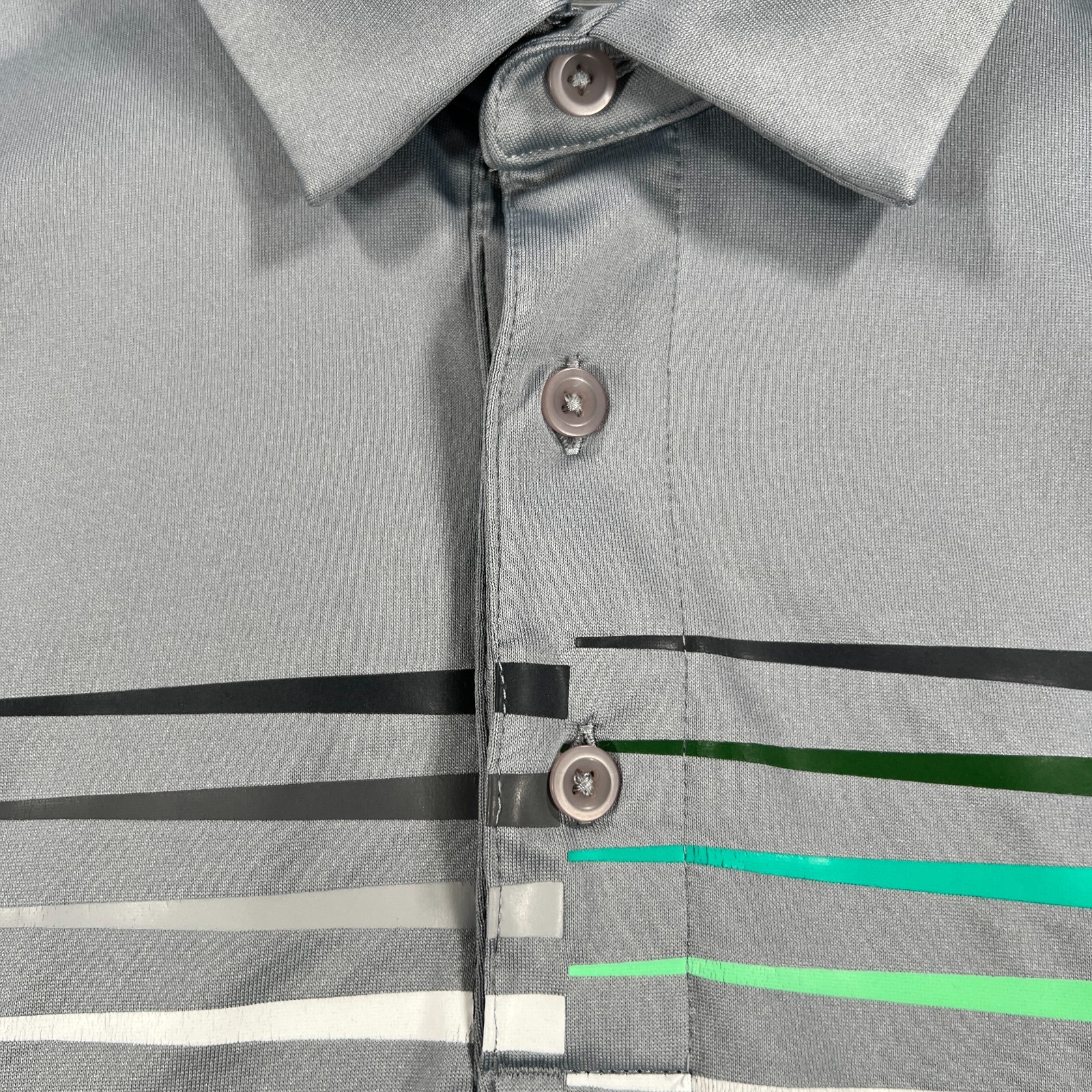 как выглядит Under Armour Polo Shirt Mens Medium Gray Striped Short Sleeve Loose Fit Heat фото