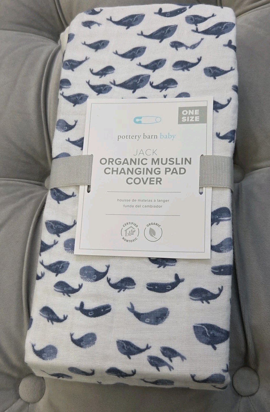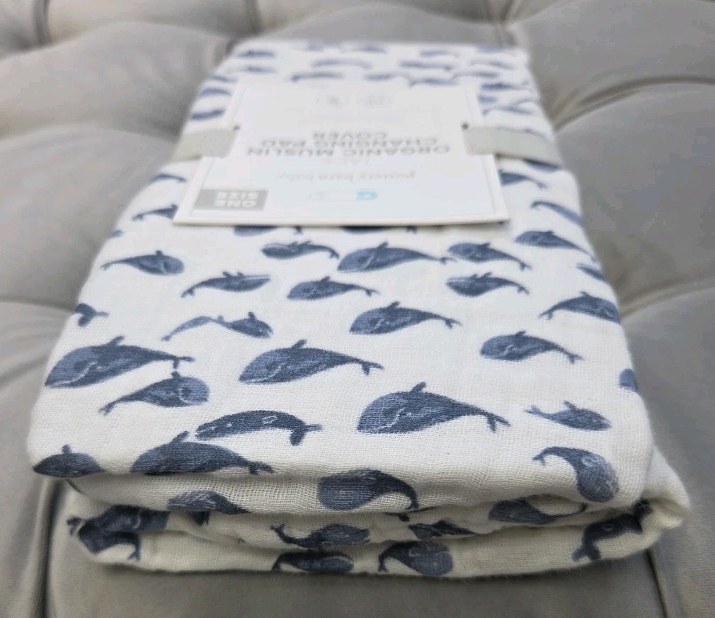 Pottery Barn Baby Jack Changing Pad Cover Organic Muslin White Blue New