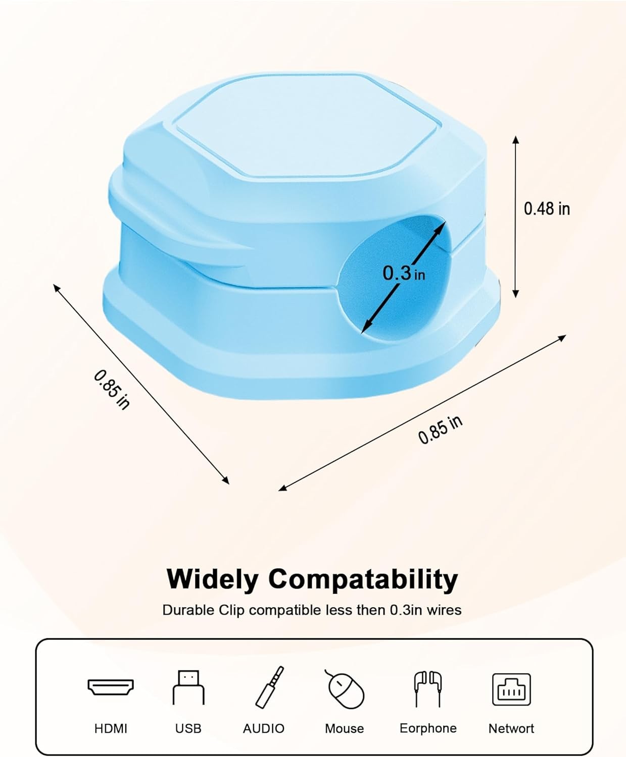 8 Pack Cord Organizer - Holder for Nightstand - Cable Clips 8 Pack, Blue
