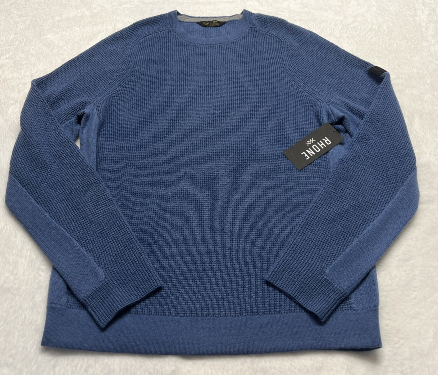 NWT Rhone Mens M Walden Waffle Knit Wool Cashmere Blend Sweater Pullover Blue