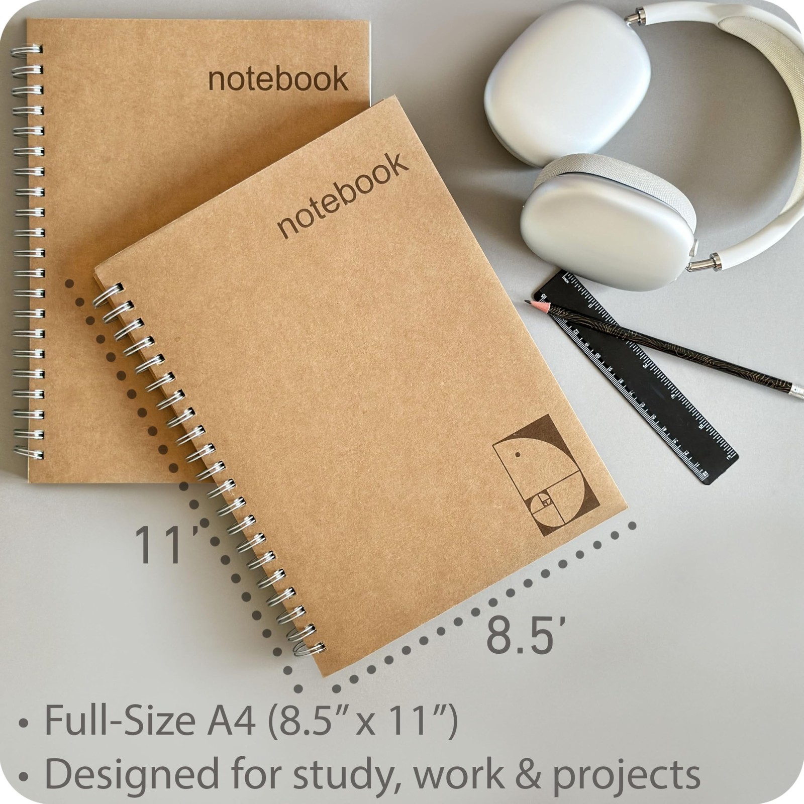 как выглядит 2 pack Grid Paper Large Spiral Notebook 8.5 x 11 with 100gsm Thick Paper - Sq... фото