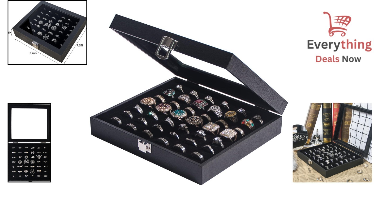 Compact Travel-Friendly 42 Slot Ring Storage Case with Glass Lid for Jewelry