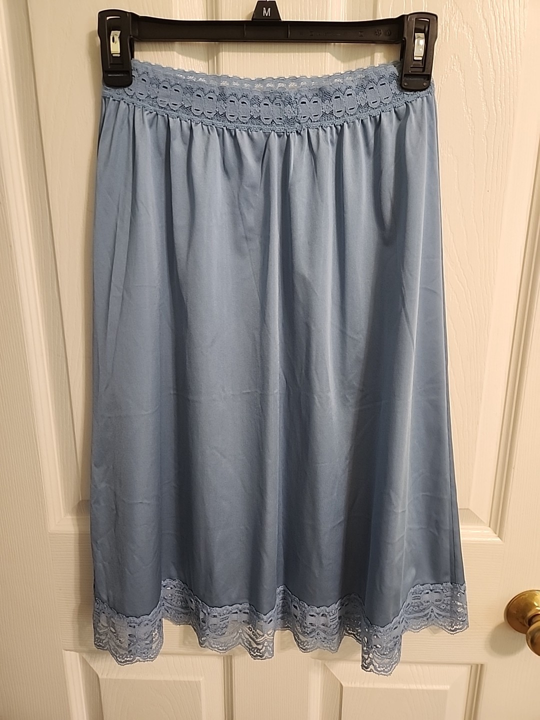 VTG Olga BLue Half Slip Secret Hug Wide Lace Band Blue W/ Blue Trim Bow Size M