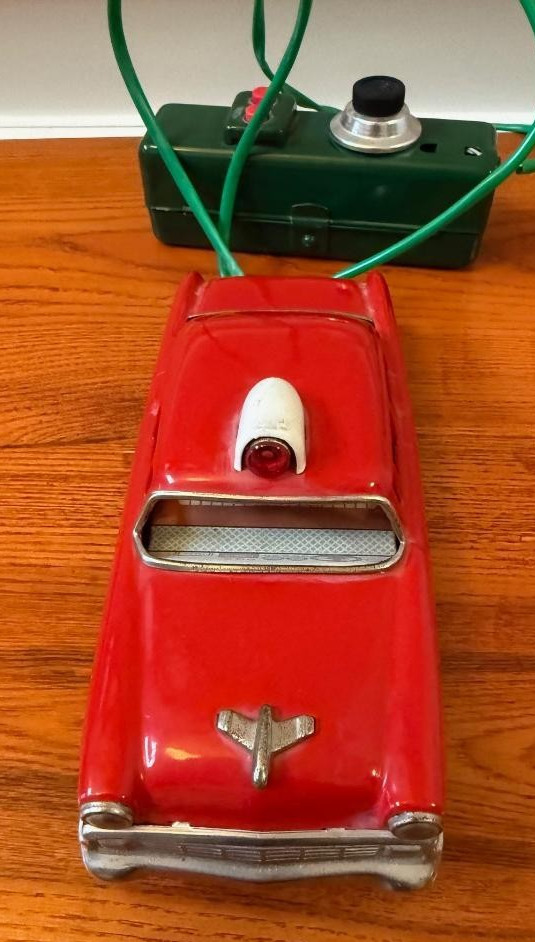 1955 Chevrolet Line Mar LineMar Red Police Car Remote Control 8 Tin Litho Japan
