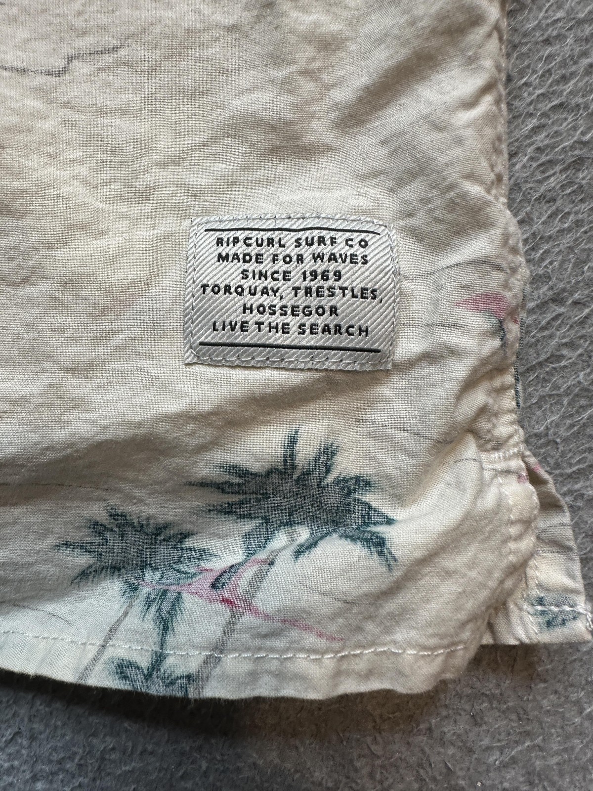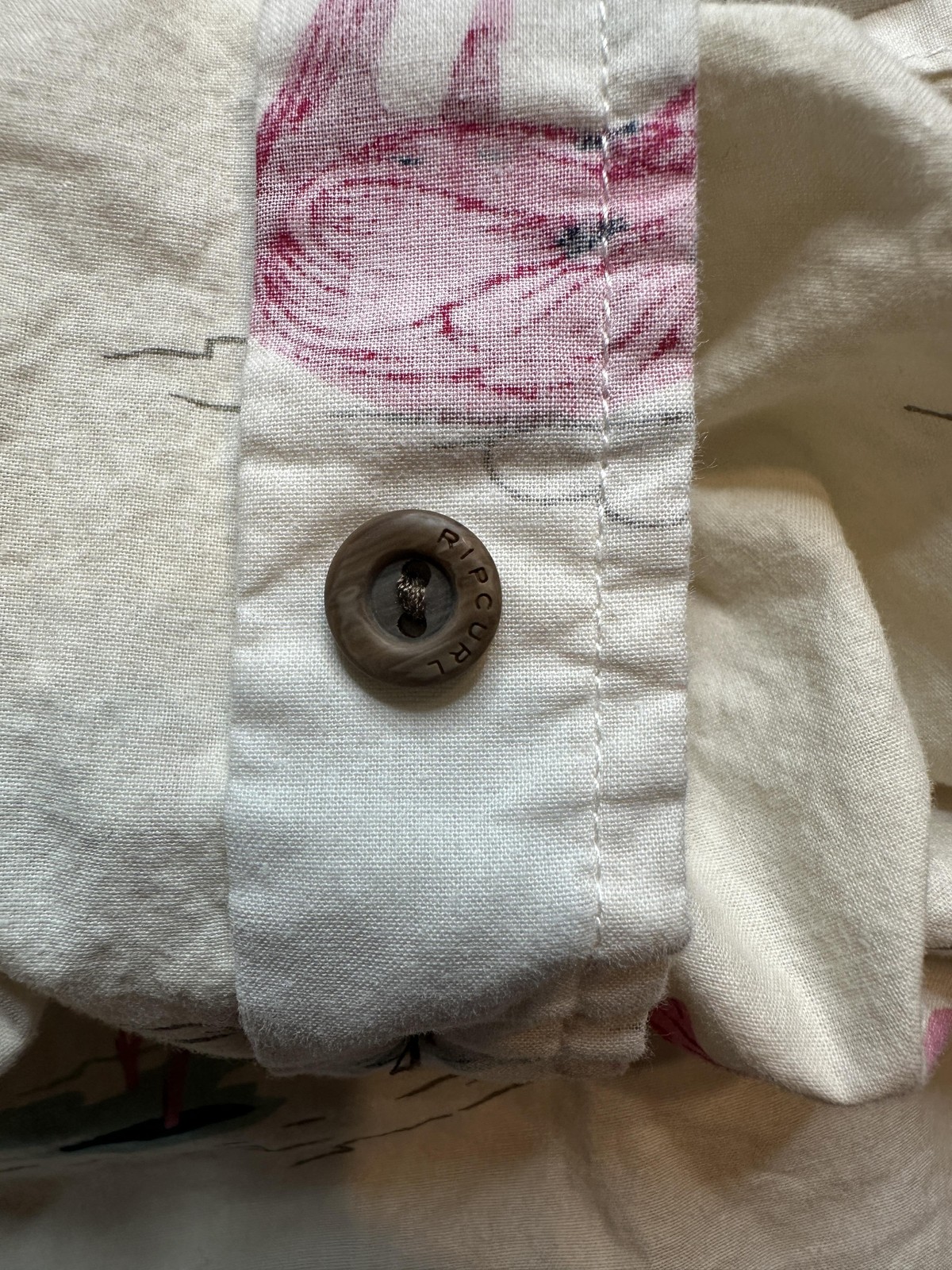 Rip Curl Shirt Mens XL Beige Flamingo Palm Tree Hawaiian Print Button Front
