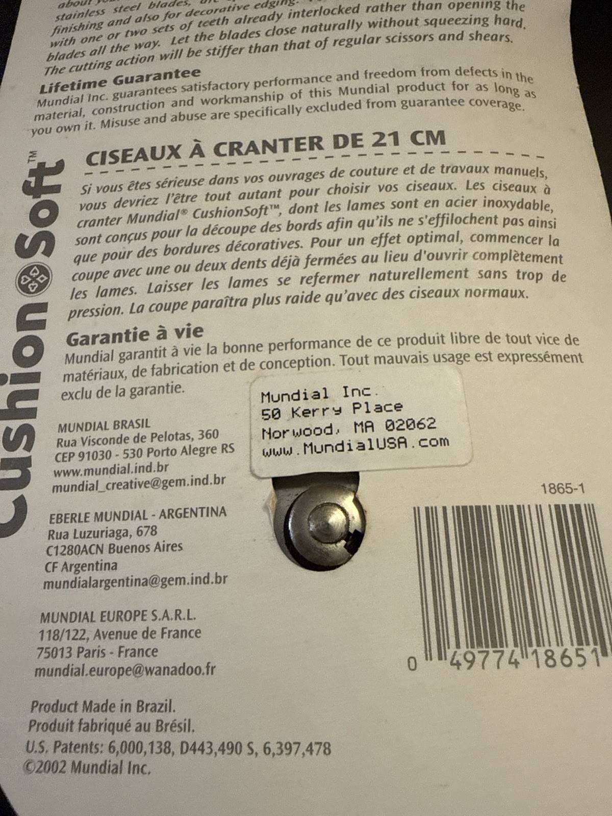 Mundial Cushion Soft 8 1/2 Inch Pinking Shears New Old Stock 2002 Vintage