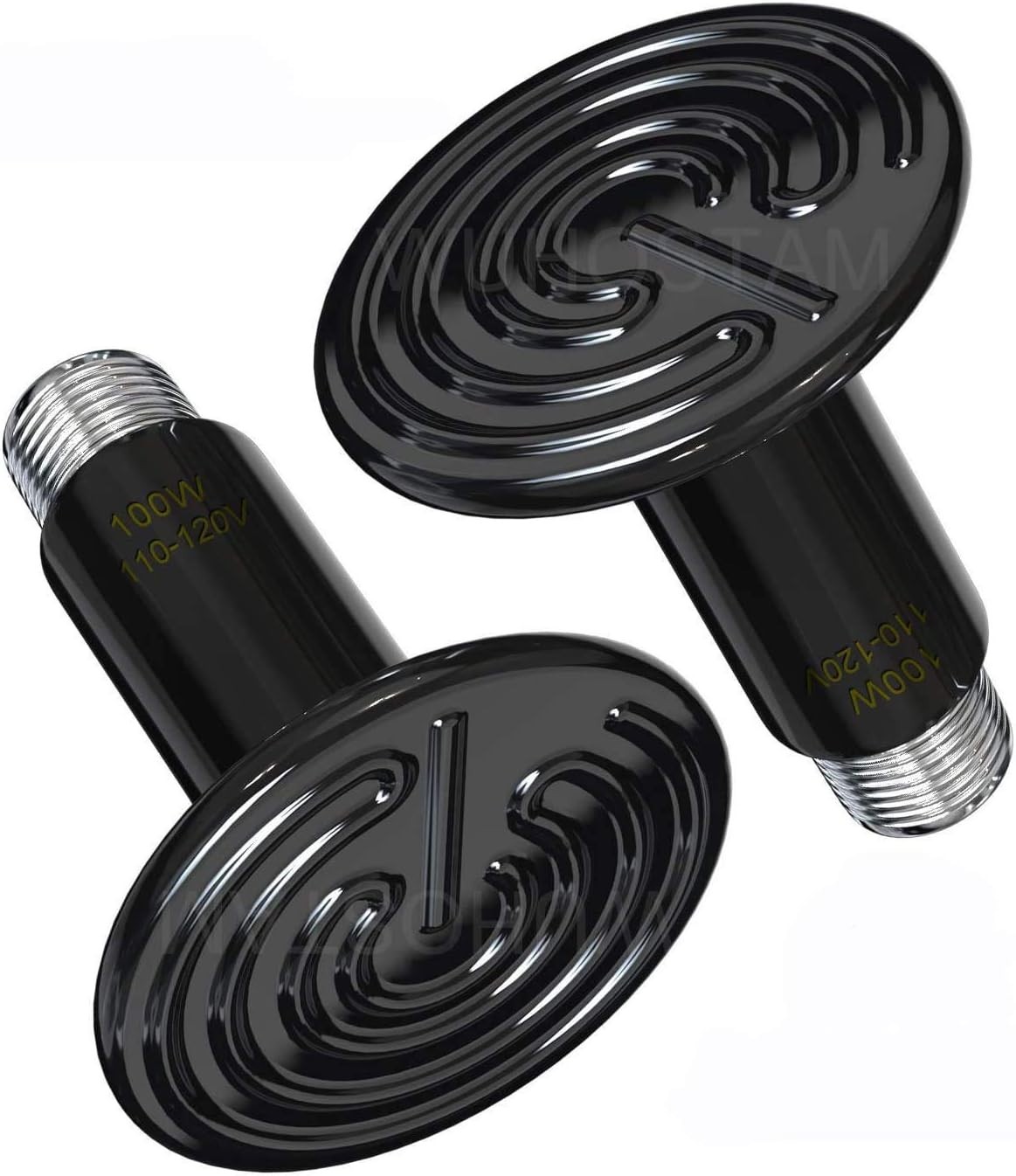 2 Pack 100W Infrared Ceramic Heat Lamp for Safe Pet Environment - Listed
