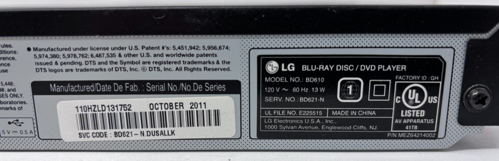 Модель: LG BD610