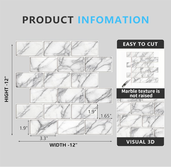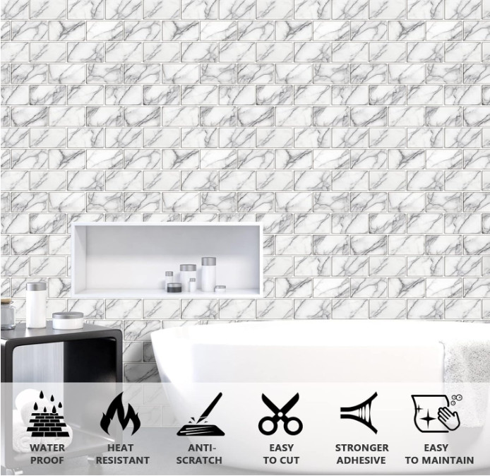 10-Sheet backsplash Tile for Kitchen Peel and Stick,12x12 Self Adhesive Subway