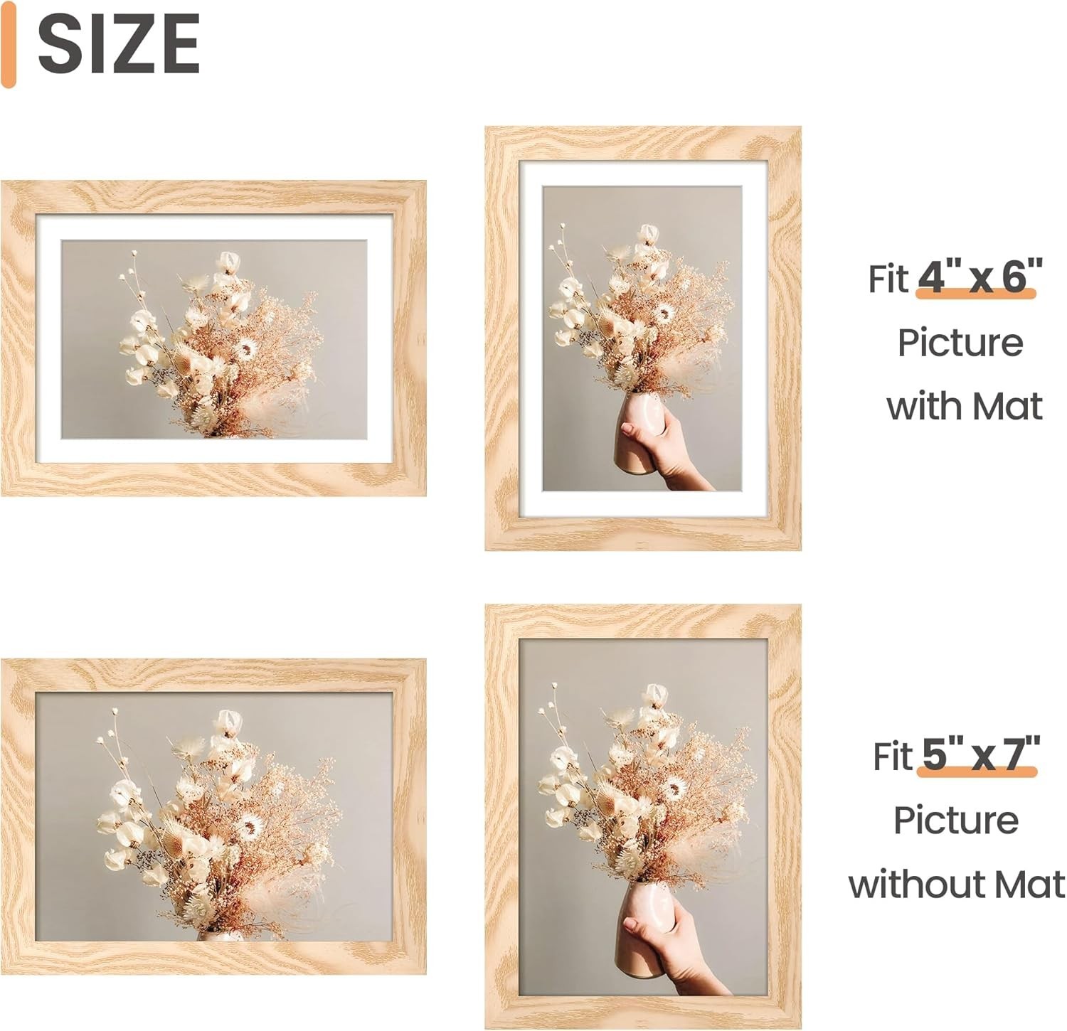 5x7 Picture Frame, Display Pictures 4x6 with Mat or 5 x 7 Without, Wall Hangi...