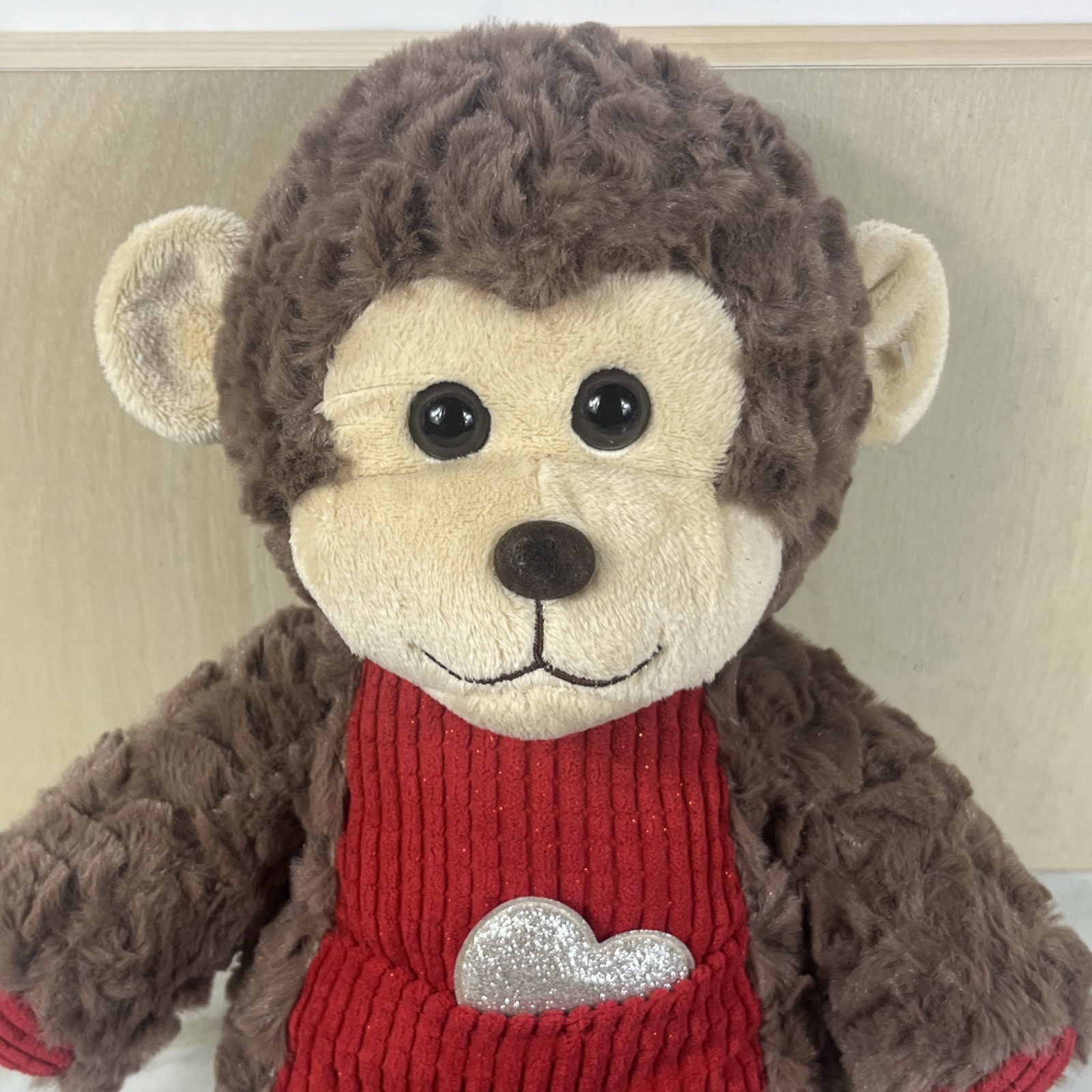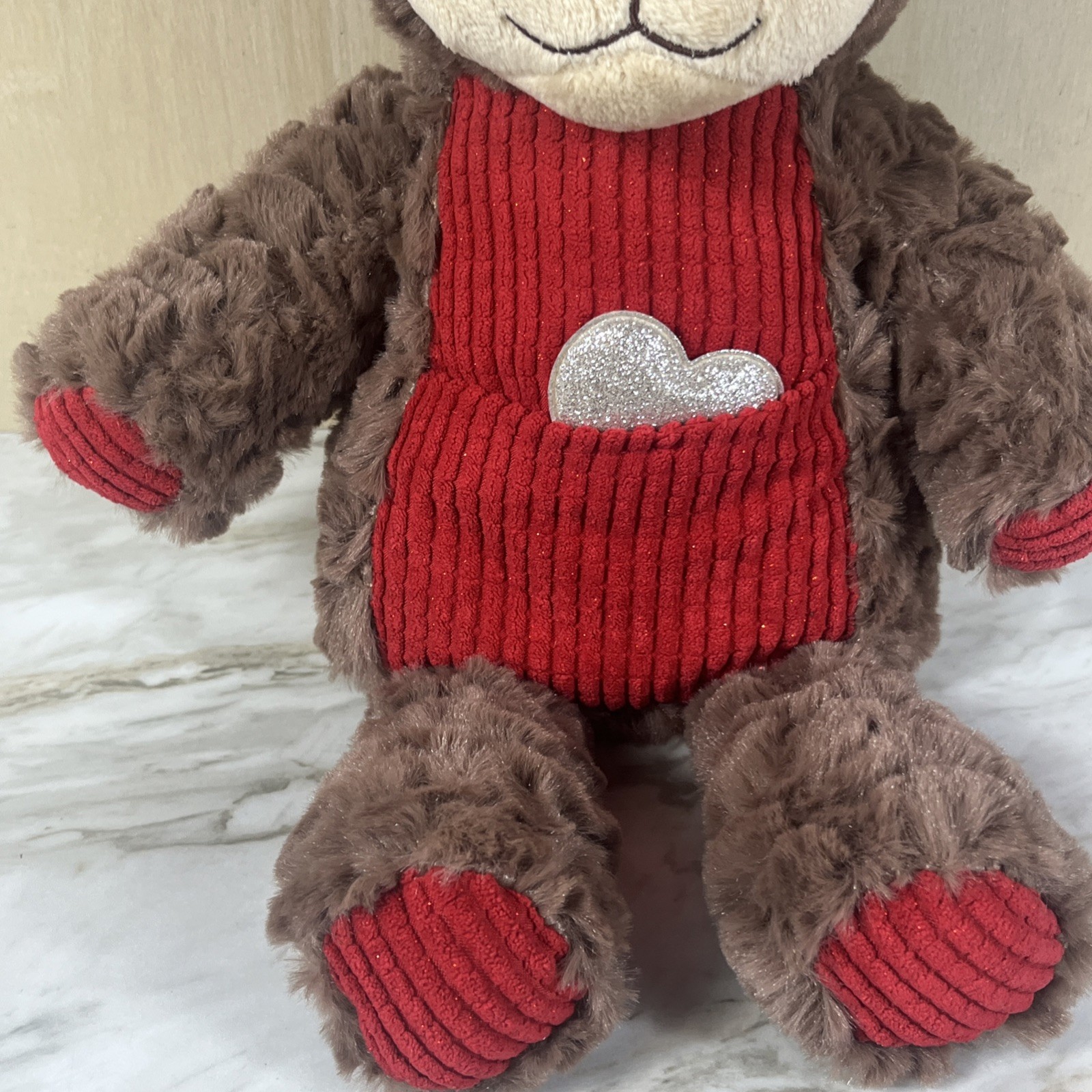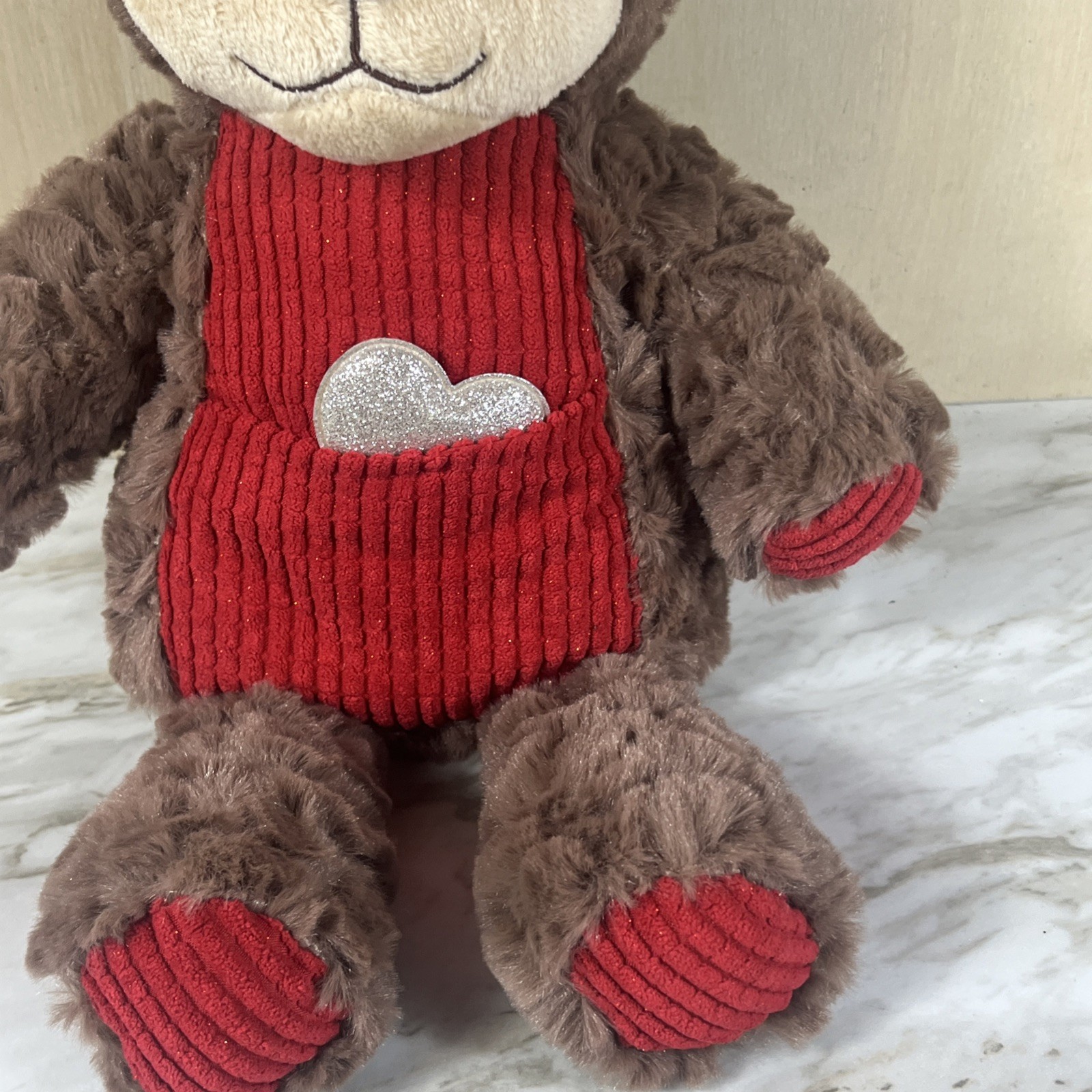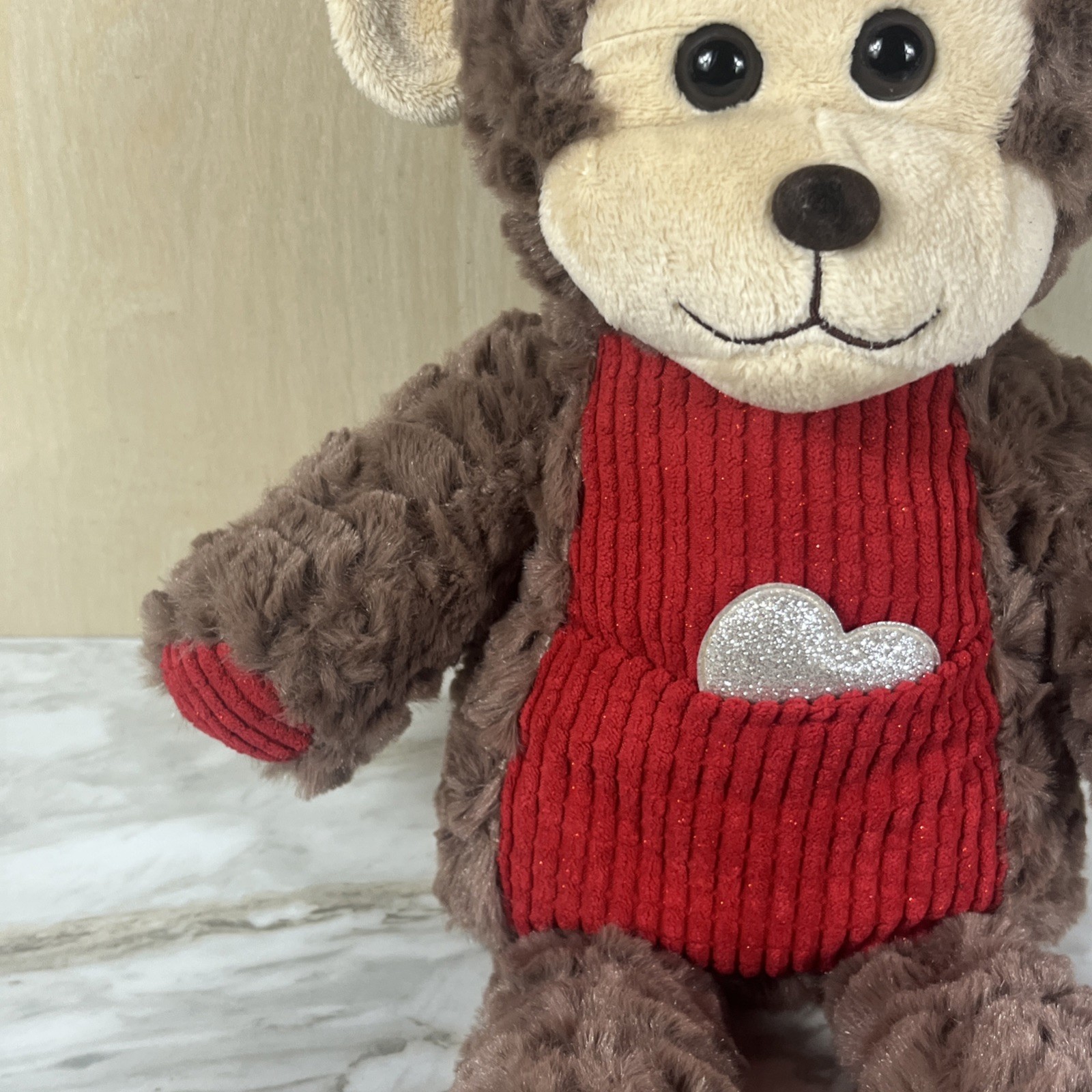 Dan Dee Monkey Valentines Day Plush Stuffed Animal 14 Brown Heart Pocket Ribbed
