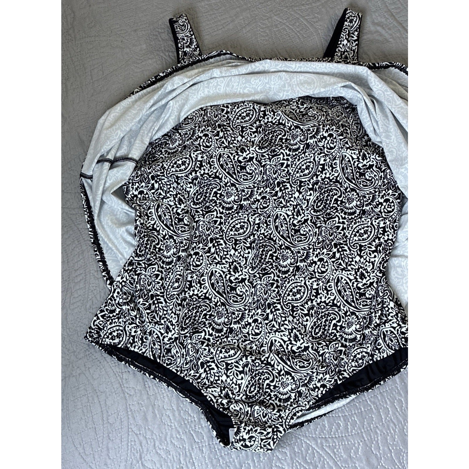 как выглядит NWOT Lands End One Piece Sz 3X Black White Paisley Dble Strap Slf Bra Swim Dress фото