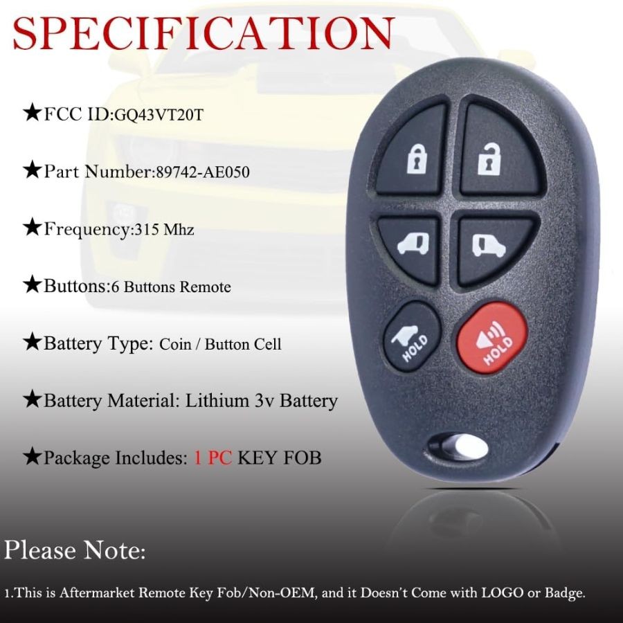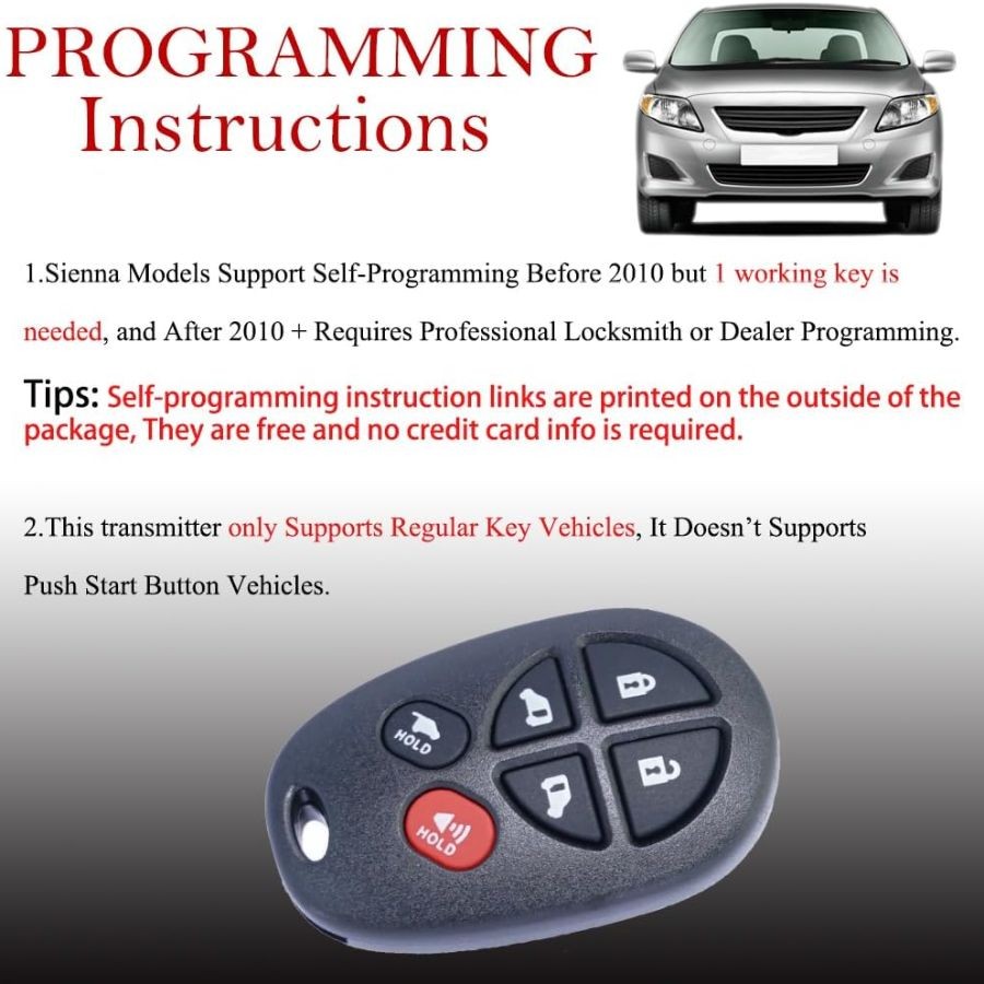 Key Fob Remote Replacement Fits for Sienna 2004 2005 2006 2007 2008 2009 2010 20