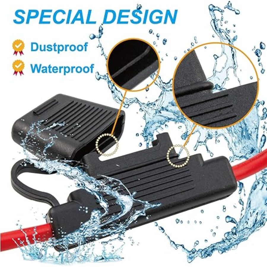 2Pcs Black in-line 8 Gauge AWG Waterproof Fuse Holder for Maxi Fuse 8AWG