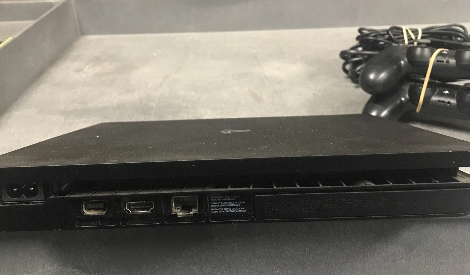 Sony PlayStation 4 PS4 Slim 1TB Console And Controllers And Cords, Powers On