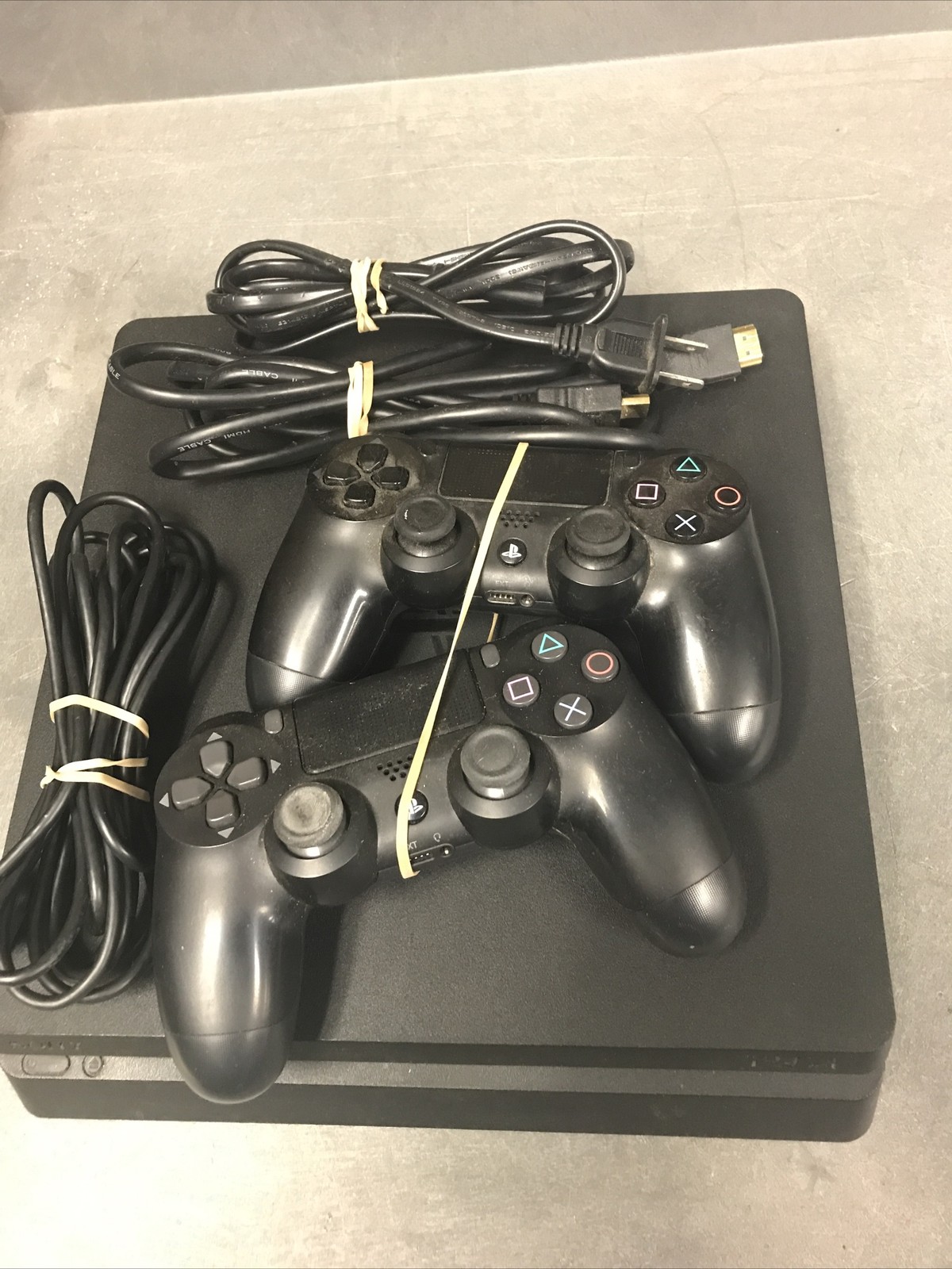 как выглядит Sony PlayStation 4 PS4 Slim 1TB Console And Controllers And Cords, Powers On фото